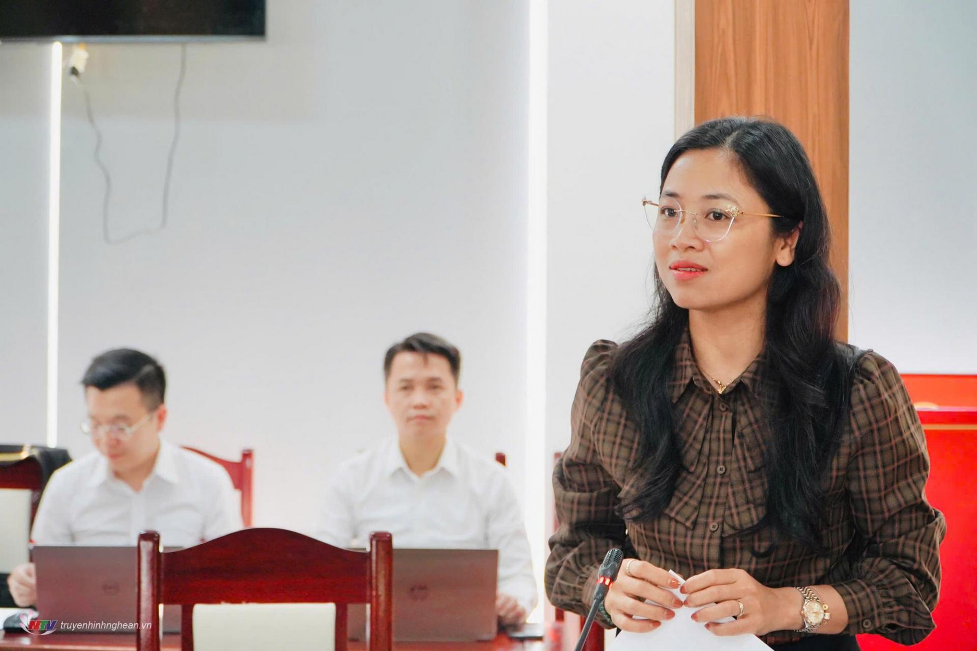 | Đồng chí Nguyễn Thị Mai Thương - Phó Giám đốc Sở Nội vụ thông tin đến các đại biểu tham dự buổi làm việc một số nội dung liên quan đến sắp xếp đơn vị hành chính. |