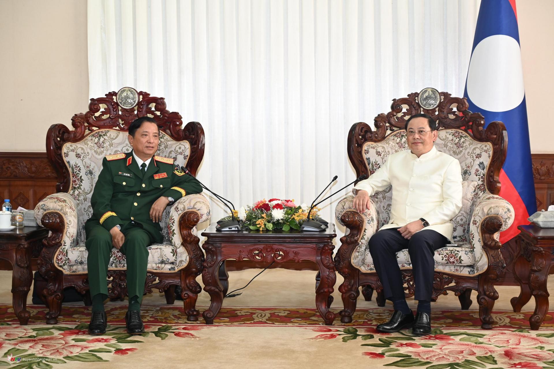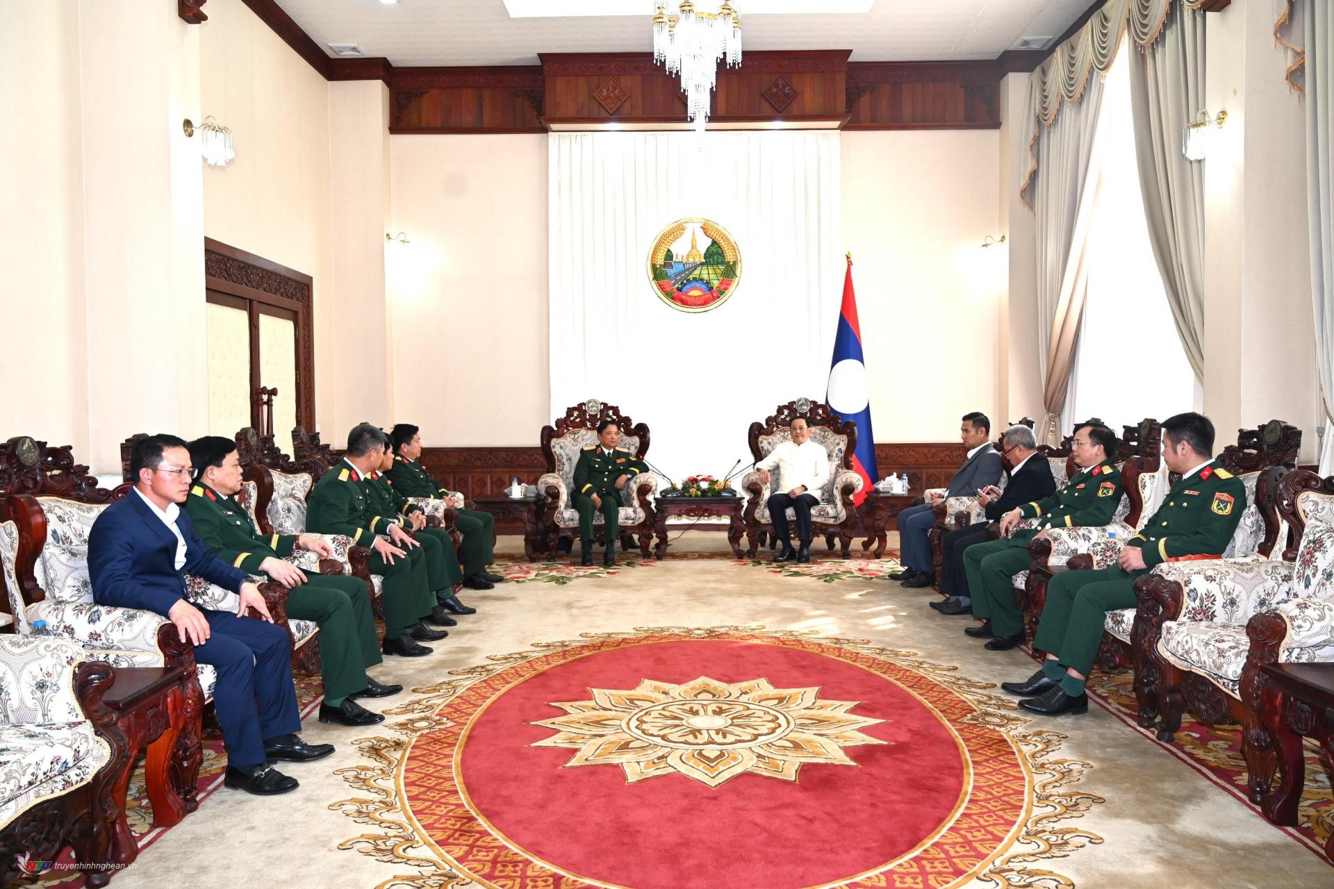 | Thủ tướng Chính phủ Lào Sonexay Siphandone đón tiếp Đoàn công tác Bộ Tư lệnh Quân khu. |