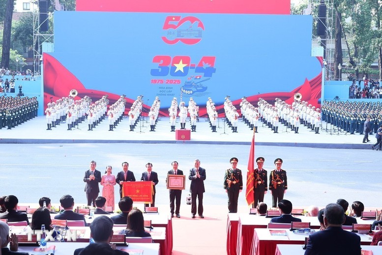 | Tổng Bí thư Tô Lâm, thay mặt lãnh đạo Đảng, Nhà nước trao tặng danh hiệu “Anh hùng Lao động” cho Đảng bộ, Chính quyền và Nhân dân Thành phố Hồ Chí Minh - Ảnh: TTXVN |