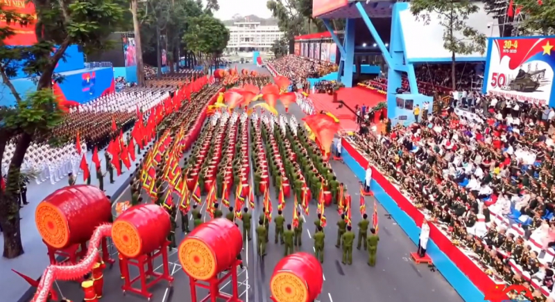 Hôm nay, trong không khí hào hùng của ngày 30/4 lịch sử, tại Thành phố Anh hùng mang tên Chủ tịch Hồ Chí Minh kính yêu, với niềm phấn khởi và tự hào lớn lao, Ban Chấp hành Trung ương Đảng Cộng sản Việt Nam, Quốc hội, Chủ tịch nước, Chính phủ nước Cộng hòa xã hội chủ nghĩa Việt Nam, Ủy ban Trung ương Mặt trận Tổ quốc Việt Nam long trọng tổ chức Lễ kỷ niệm "50 năm ngày giải phóng miền Nam, thống nhất đất nước" - mốc son chói lọi nhất trong lịch sử dựng nước và giữ nước của dân tộc; đánh dấu sự kết thúc oanh liệt cuộc chiến đấu kiên cường 30 năm giành độc lập, tự do, thống nhất Tổ quốc; chấm dứt ách thống trị hơn một thế kỷ của chủ nghĩa thực dân cũ và mới; đưa đất nước bước vào kỷ nguyên mới, kỷ nguyên độc lập dân tộc và chủ nghĩa xã hội.