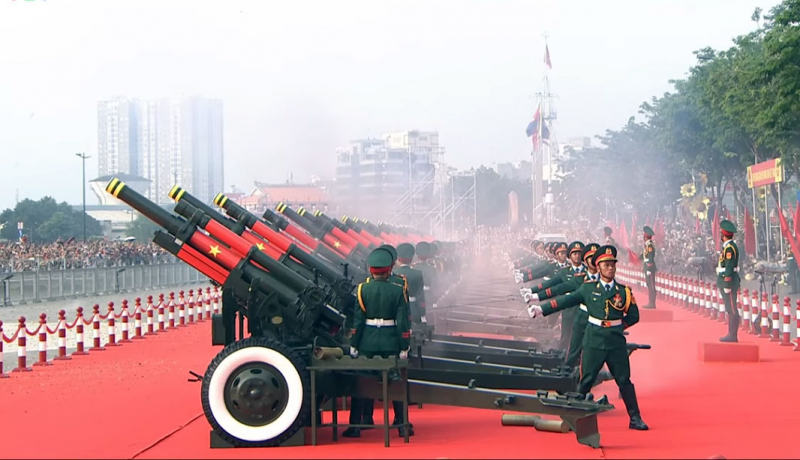 | Trong Lễ kỷ niệm 50 năm Ngày giải phóng miền Nam, Thống nhất đất nước, lực lượng pháo lễ sẽ sử dụng 18 khẩu pháo 105mm (gồm 15 khẩu chính thức và 3 khẩu dự bị) để chào mừng. Đội pháo này sẽ thực hiện 21 loạt bắn trên nền Quốc thiều nước Cộng hòa xã hội chủ nghĩa Việt Nam. |