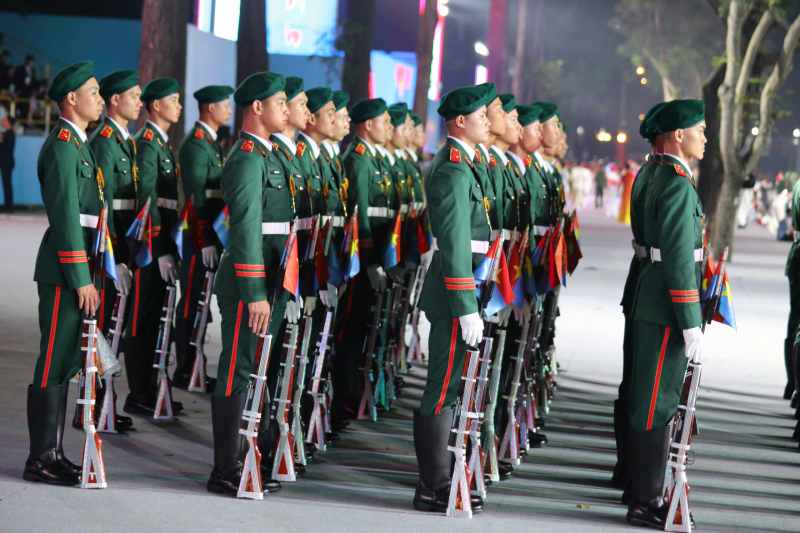 Đặc biệt, phần diễu binh, diễu hành có sự tham gia của các khối đại diện lực lượng vũ trang 3 nước Trung Quốc, Lào và Campuchia.
