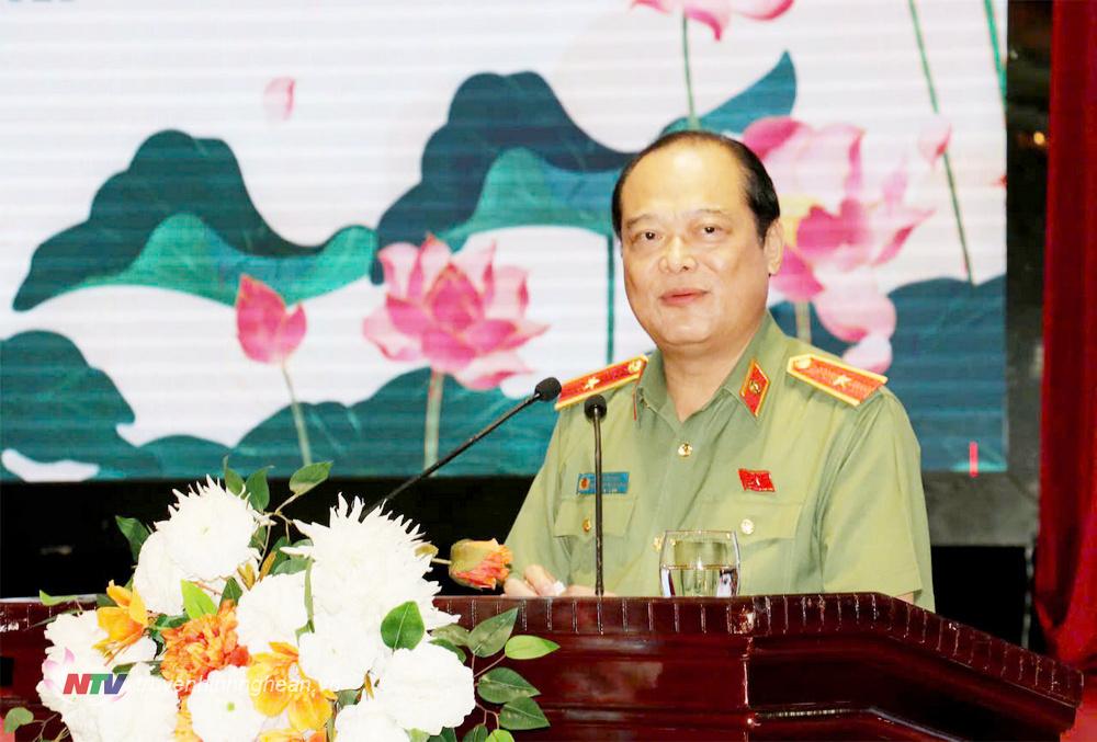 | Thiếu tướng Lê Xuân Đức - Đại diện Hiệp hội thể thao Công an Nhân dân Việt Nam thông tin về giải Marathon “Hành trình theo chân Bác - Vì an ninh Tổ quốc". |