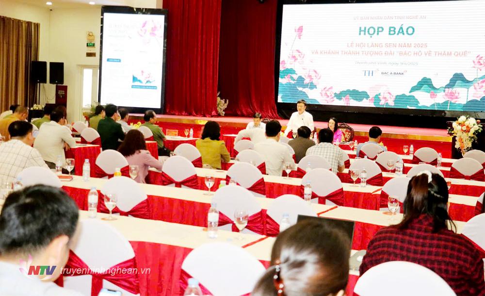 Trong khuôn khổ của buổi họp báo, Sở Văn hóa - Thể thao và Du lịch cũng đã thông tin về Kế hoạch tổ chức Lễ hội làng Sen năm 2025 và khánh thành Tượng đài “Bác Hồ về thăm quê”, chào mừng kỷ niệm 135 năm ngày sinh Chủ tịch Hồ Chí Minh.