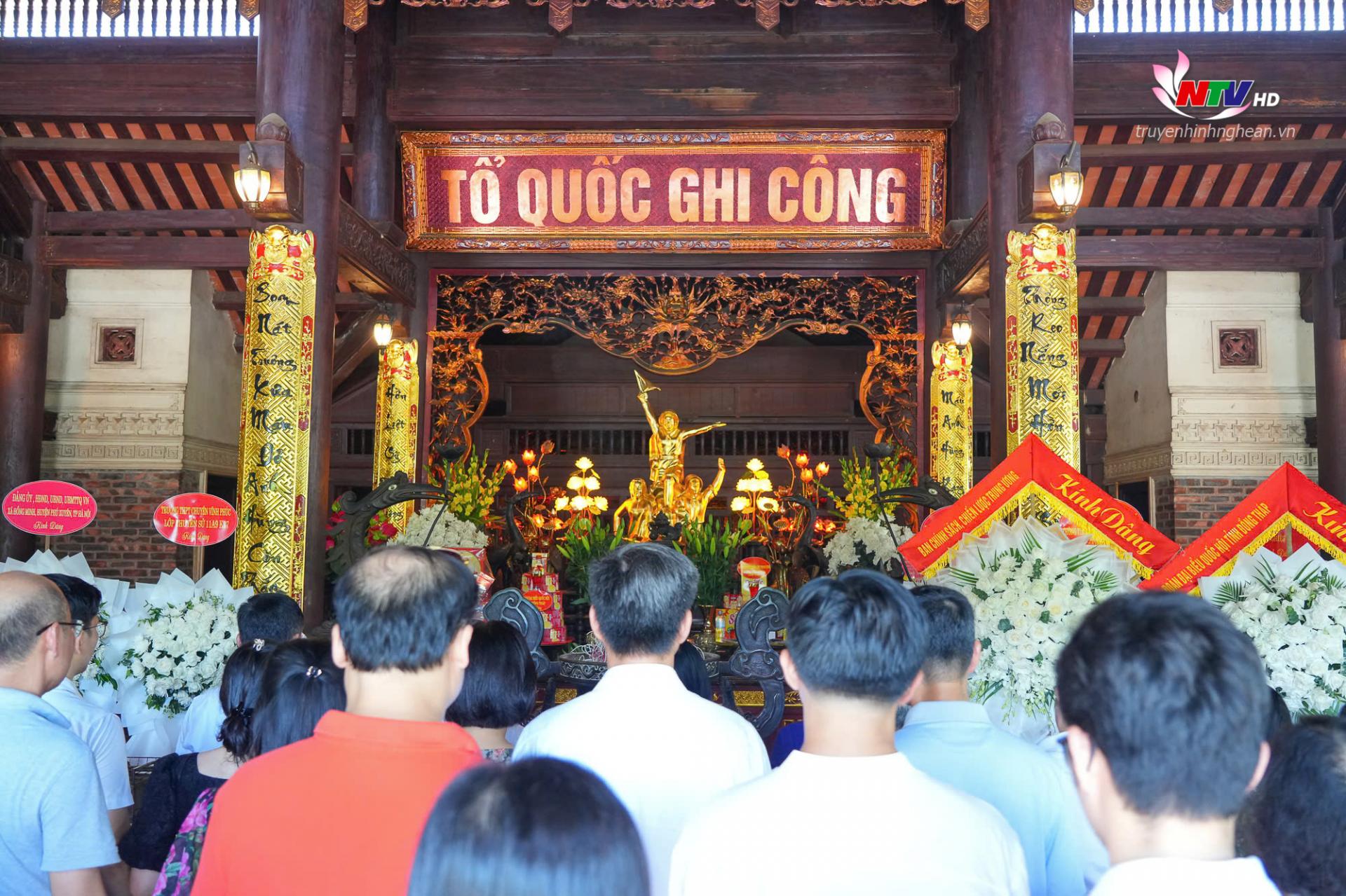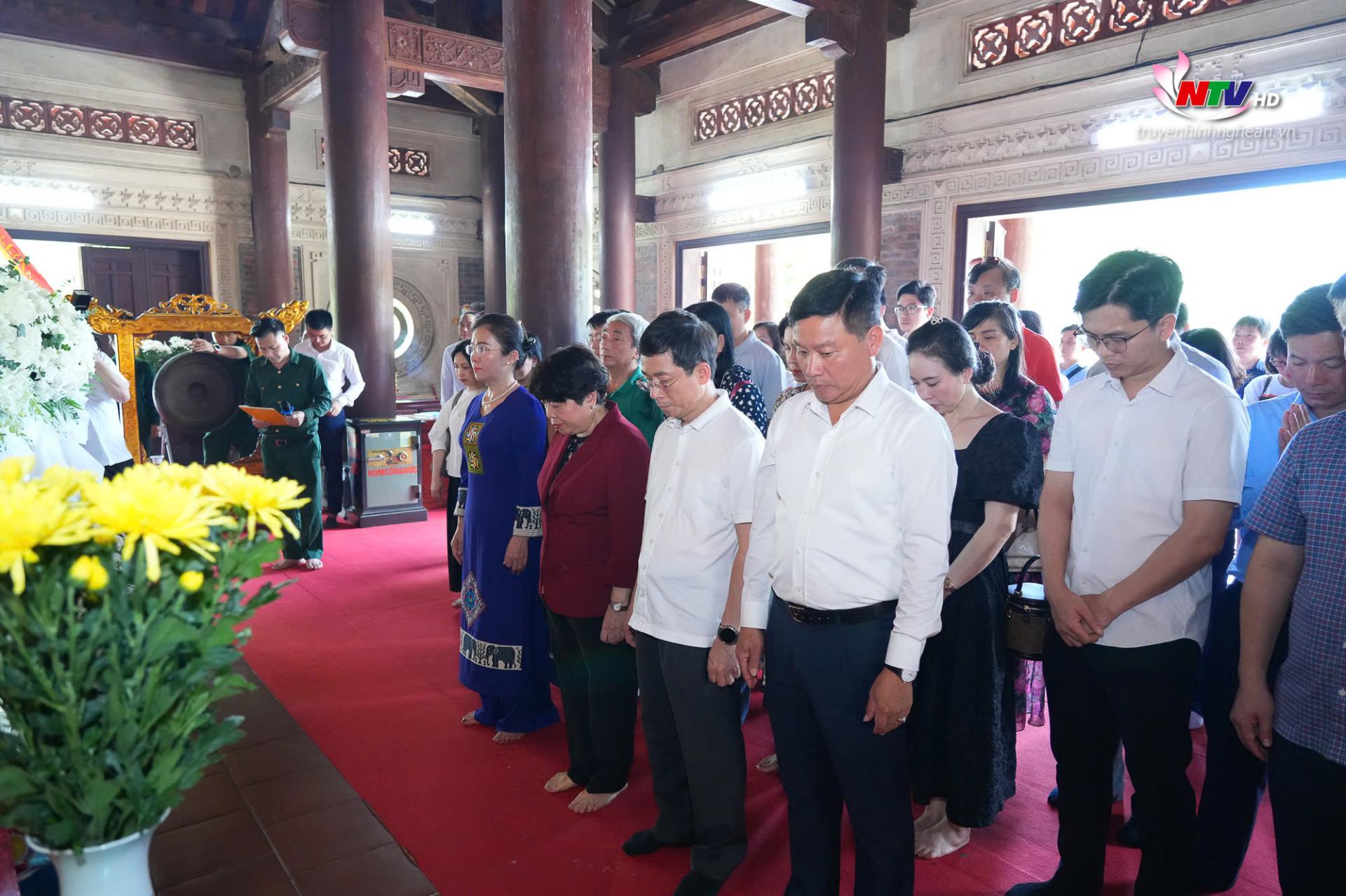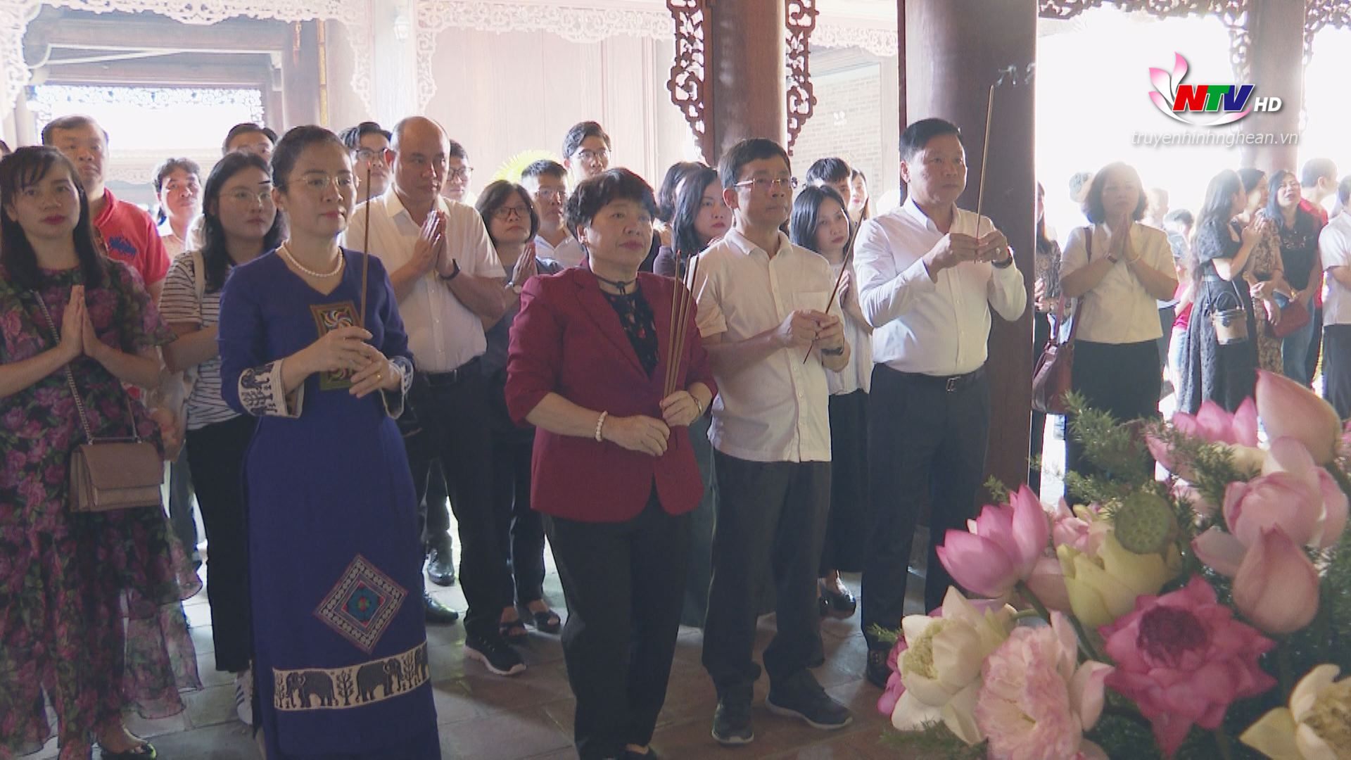 | Đoàn đại biểu tưởng niệm gia tiên Chủ tịch Hồ Chí Minh tại đền Chung Sơn. |