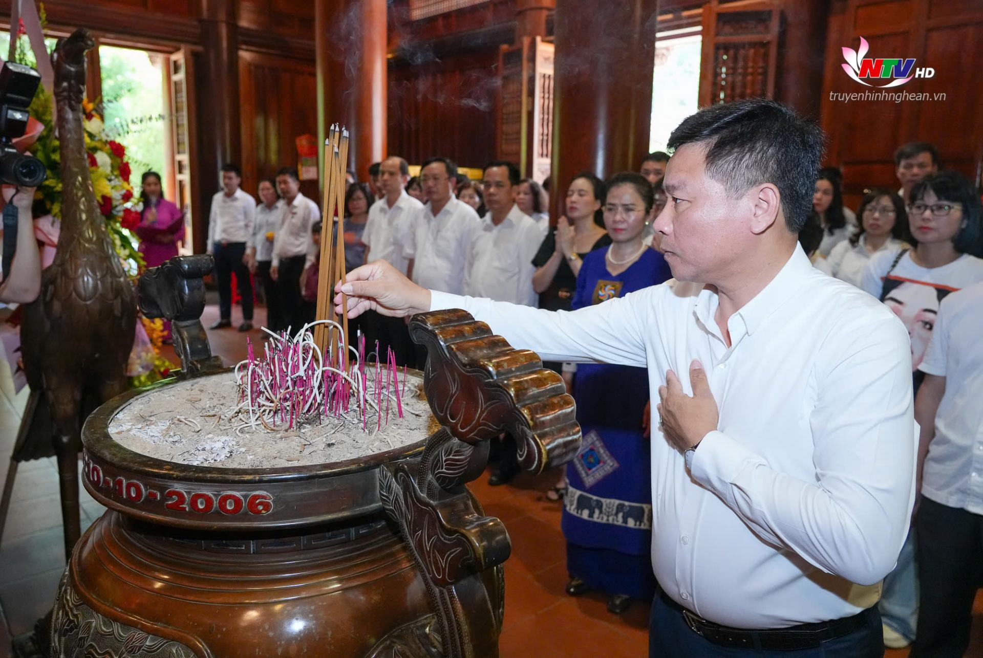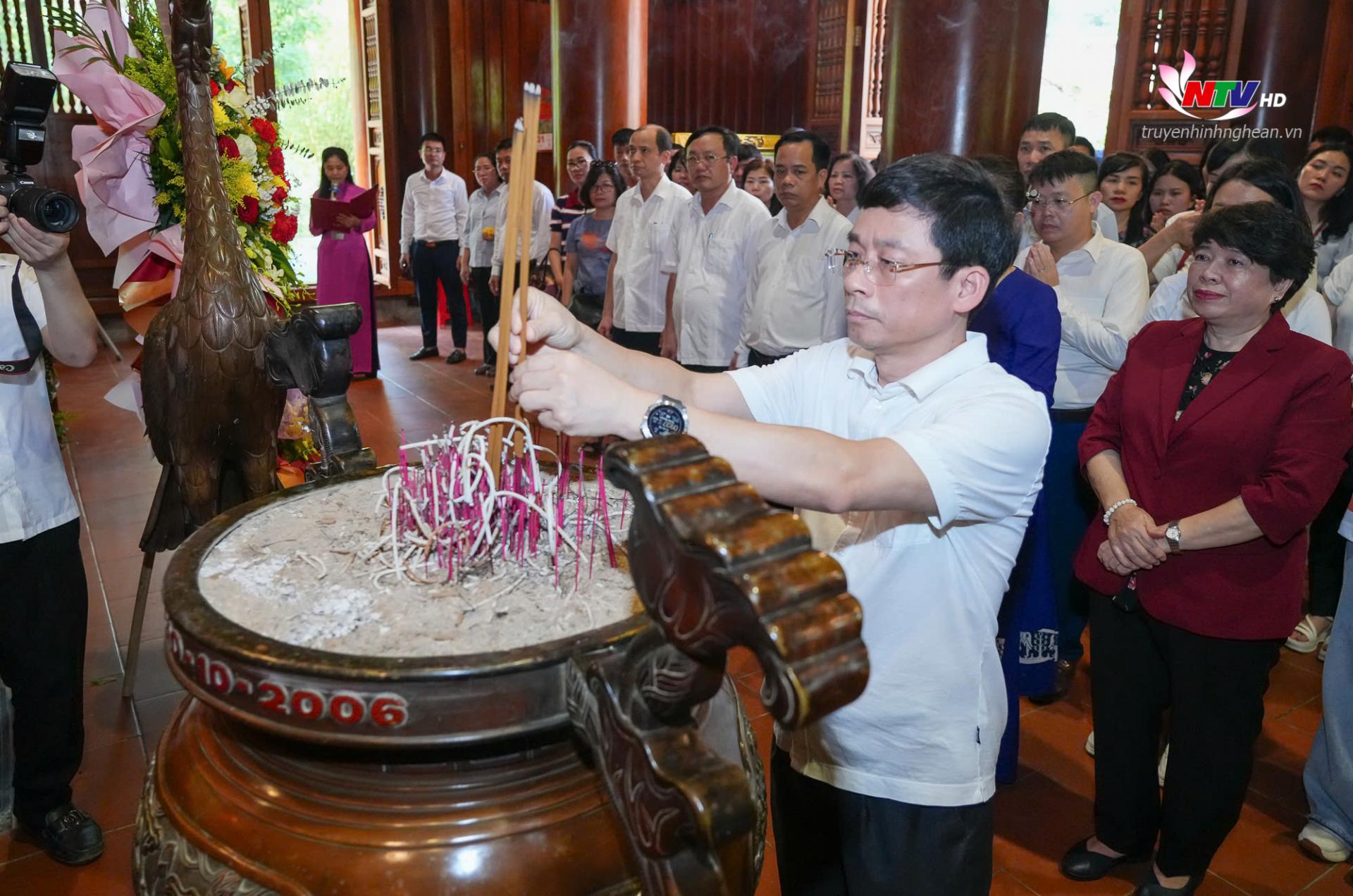Trước đó, đoàn đã làm lễ dâng hương tại đền Chung Sơn, đền thờ gia tiên Chủ tịch Hồ Chí Minh và những người thân yêu trong gia đình của Người.