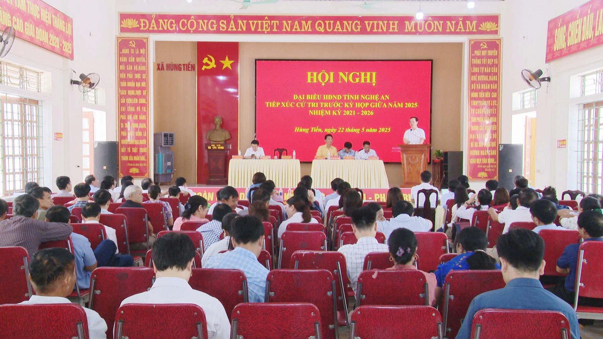 Cử tri xã Hùng Tiến kiến nghị nhiều vấn đề dân sinh bức thiết: Về hạ tầng nông thôn, cử tri phản ánh tình trạng thi công cầm chừng của Dự án xây dựng đường giao thông nối từ đường vành đai phía Bắc (xã Nam Lĩnh) đến chợ Cồn Bụt (xã Hùng Tiến); Dự án tuyến đường từ Quốc lộ 46 nối với đền Nhạn Tháp xã Hồng Long đề nghị nghiên cứu, xem xét đầu tư tuyến nhánh từ chợ Da xã Hùng Tiến đi qua xóm Bố Ân nối với tuyến đường Quốc lộ 46 - Đền Nhãn Tháp để phát huy tối đa hiệu quả kinh tế xã hội trước mắt và lâu dài; Tuyến đường di tích Kim Liên - Đa Nhiệm qua xã Hùng Tiến hiện đã xuống cấp, đề nghị bố trí nguồn vốn để tu sửa; Để giải quyết nguyên nhân khan hiếm và tăng giá cát sỏi như hiện nay, đề nghị tỉnh tạo điều kiện thành lập tổ lưu động để kiểm định phương tiện khai thác cát sỏi từ huyện Đô Lương trở lên…