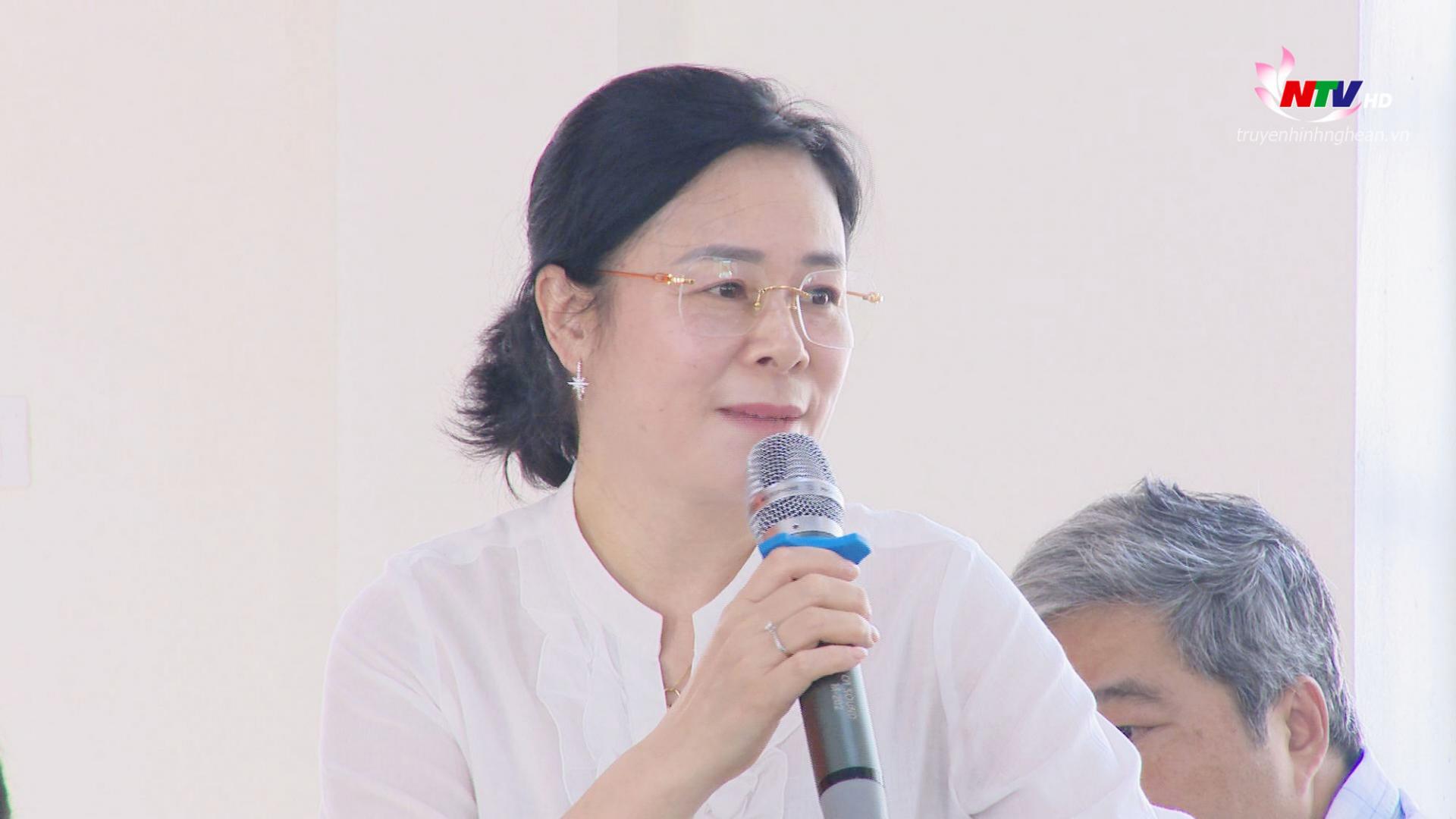 | Giám đốc Sở Y tế Lê Thị Hoài Chung phát biểu tại buổi tiếp xúc cử tri. |
