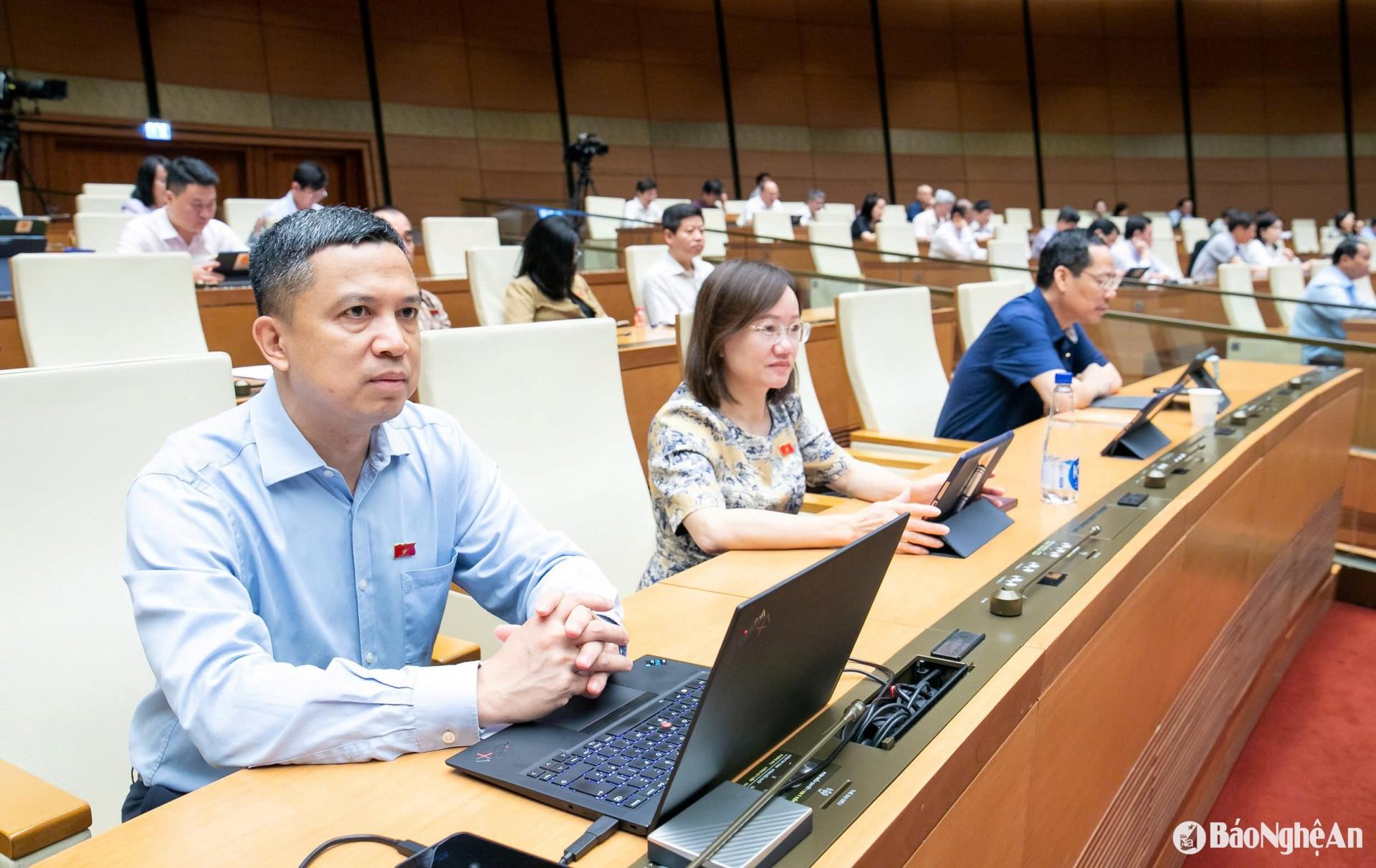 | Các vị ĐBQH Đoàn Nghệ An trong phiên làm việc sáng 17/5. |