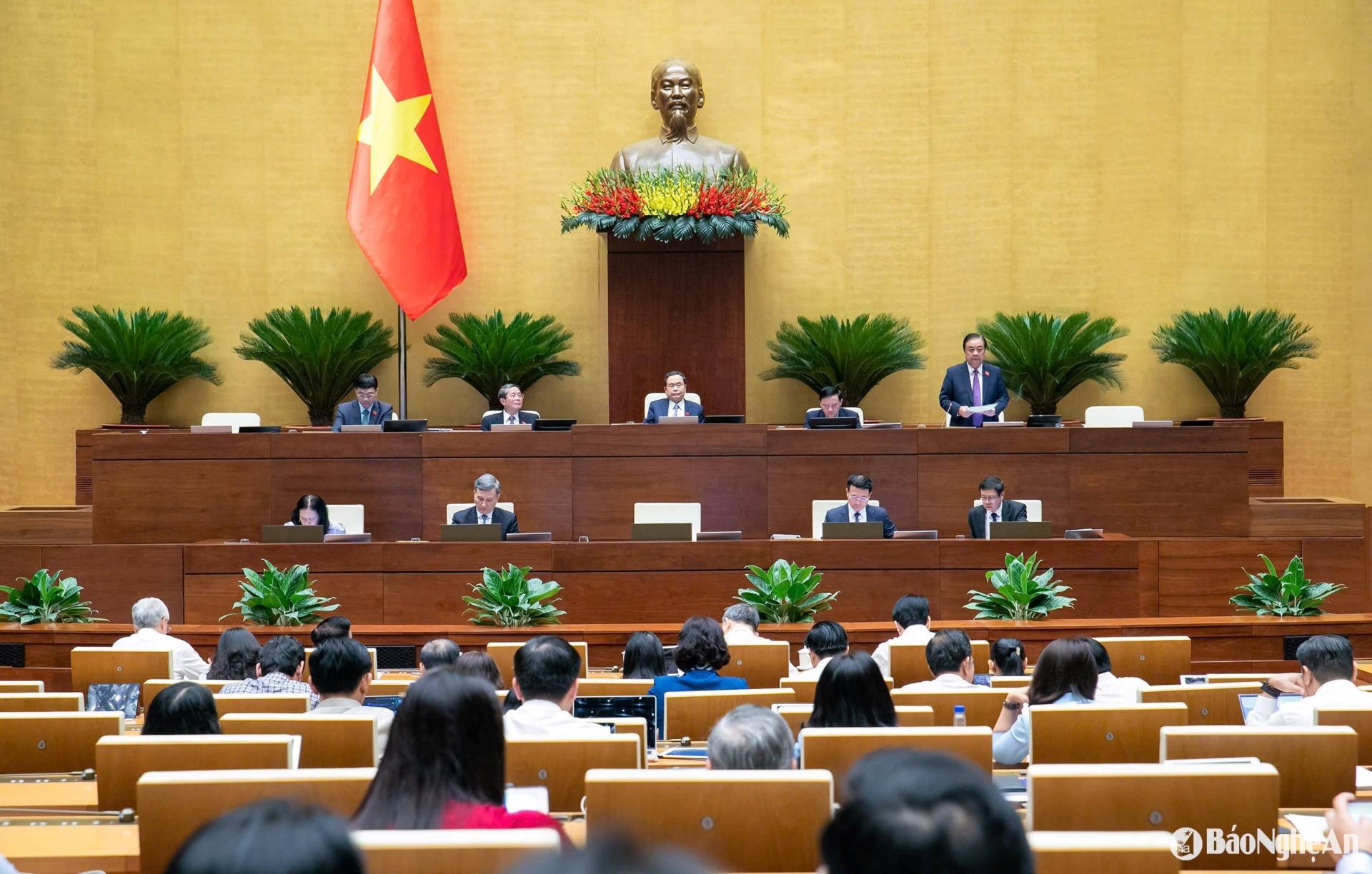 | Quang cảnh phiên làm việc sáng 17/5 tại Hội trường Diên Hồng, Nhà Quốc hội. |