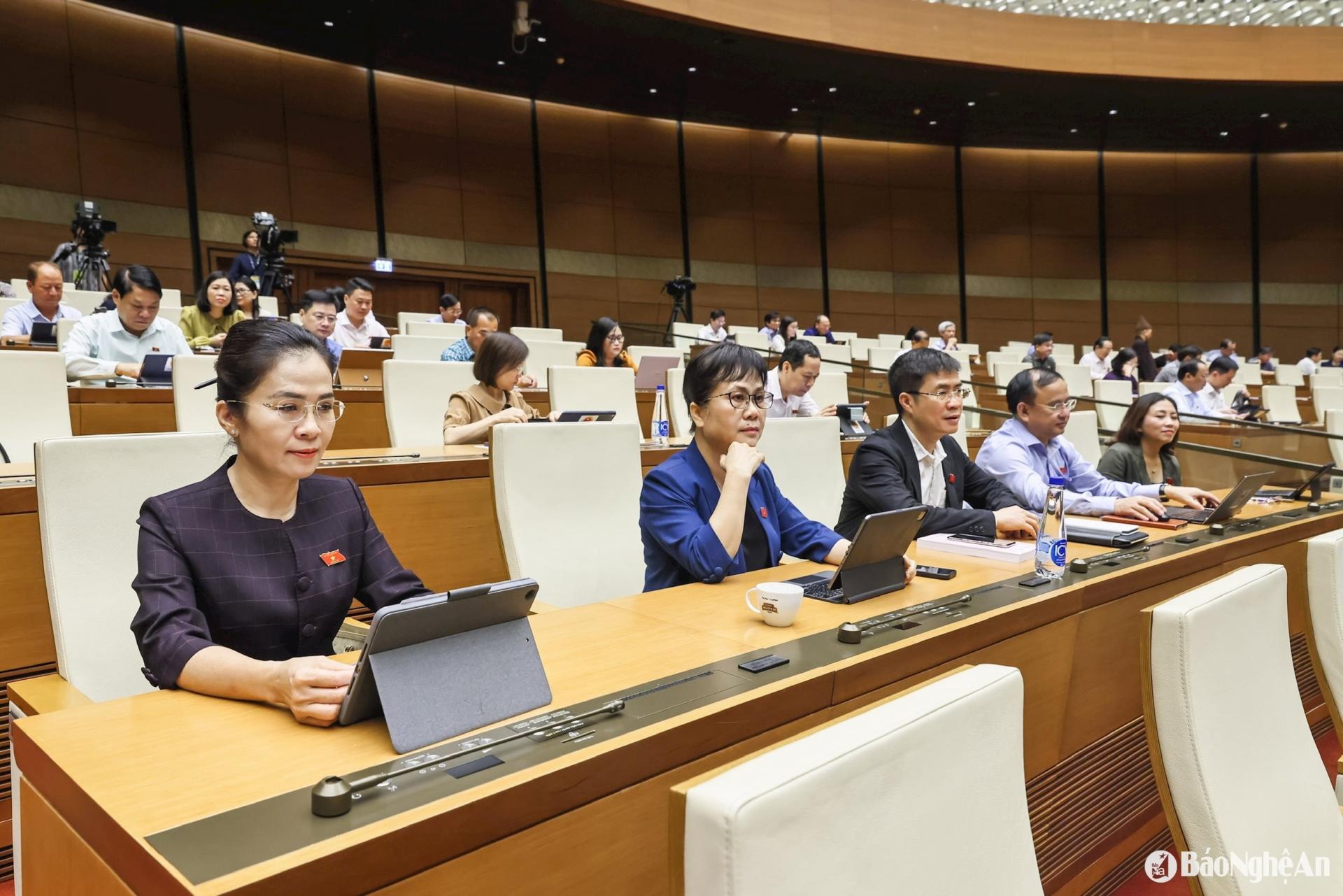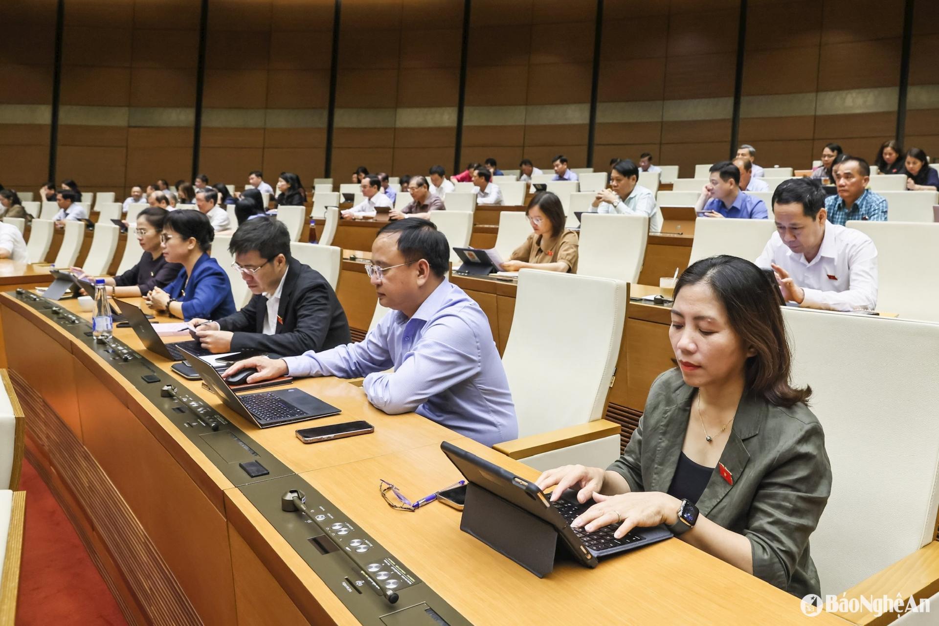 | Các vị ĐBQH đoàn Nghệ An tại phiên làm việc sáng 24/5. |
