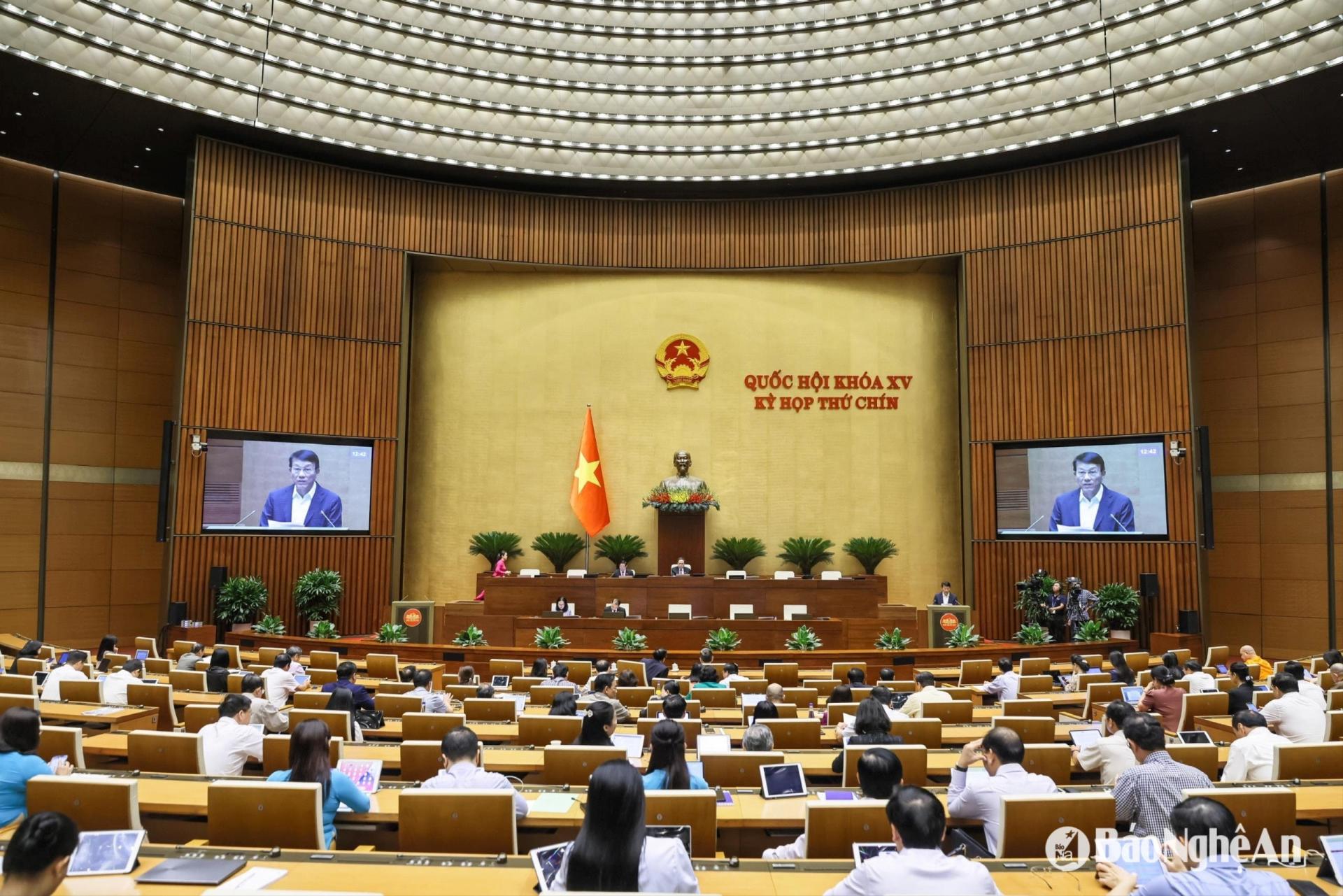 | Quang cảnh phiên làm việc sáng 24/5 tại Hội trường Diên Hồng, Nhà Quốc hội. |