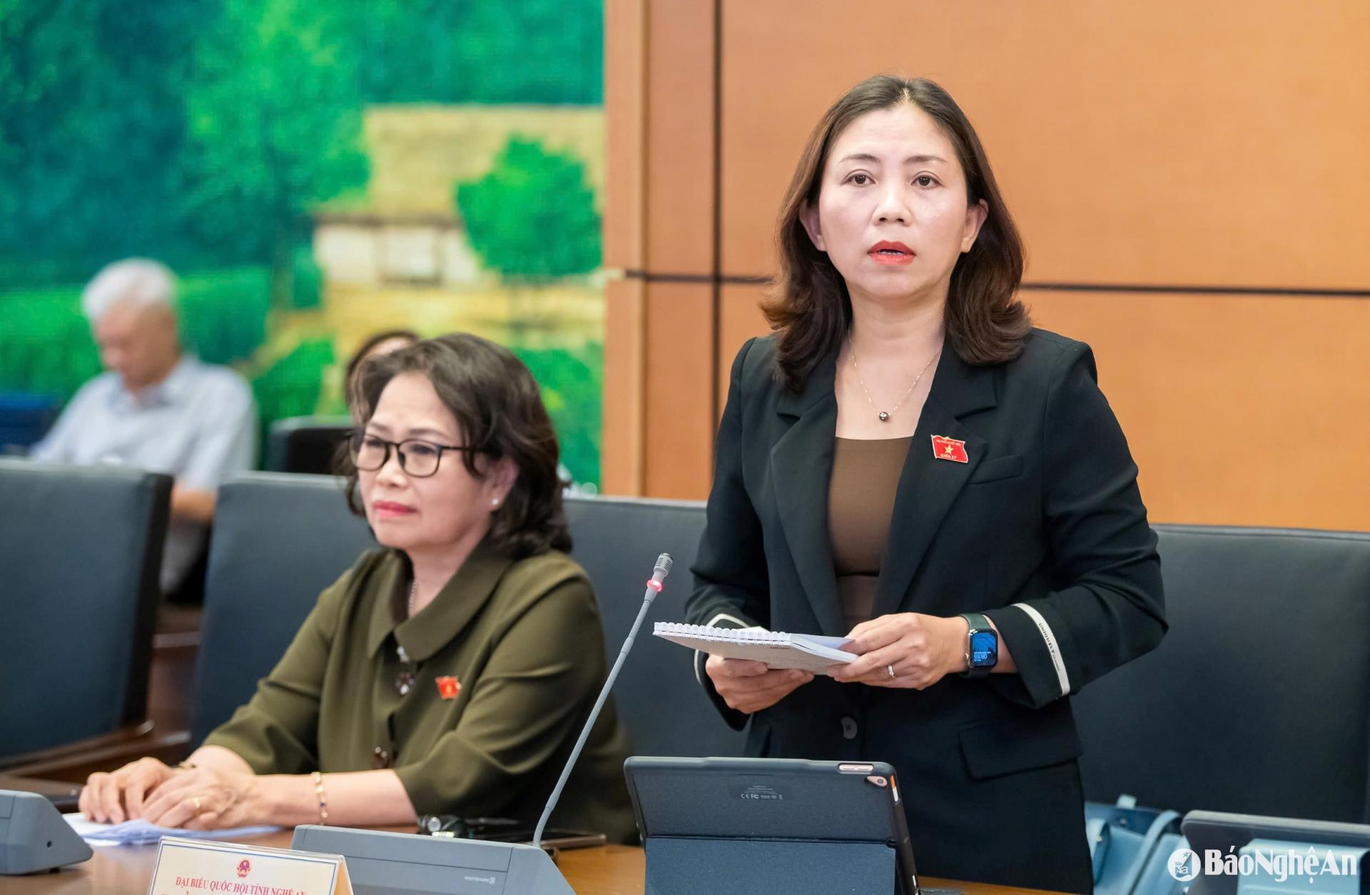 | Đồng chí Võ Thị Minh Sinh - Phó Bí thư Tỉnh ủy, Chủ tịch Ủy ban MTTQ Việt Nam tỉnh, Trưởng đoàn ĐBQH tỉnh Nghệ An và các ĐBQH tại phiên thảo luận Tổ 4 chiều 6/5. |