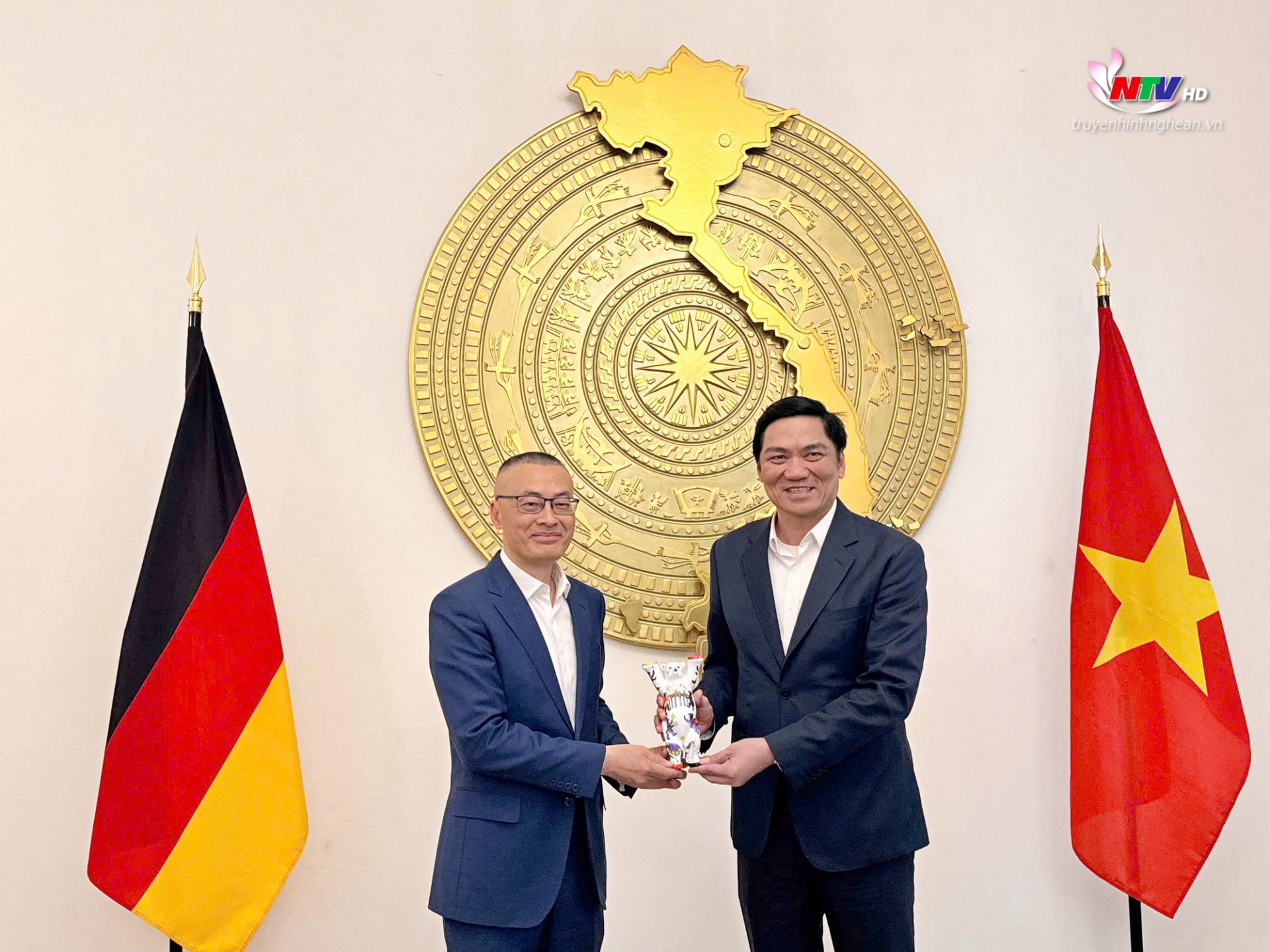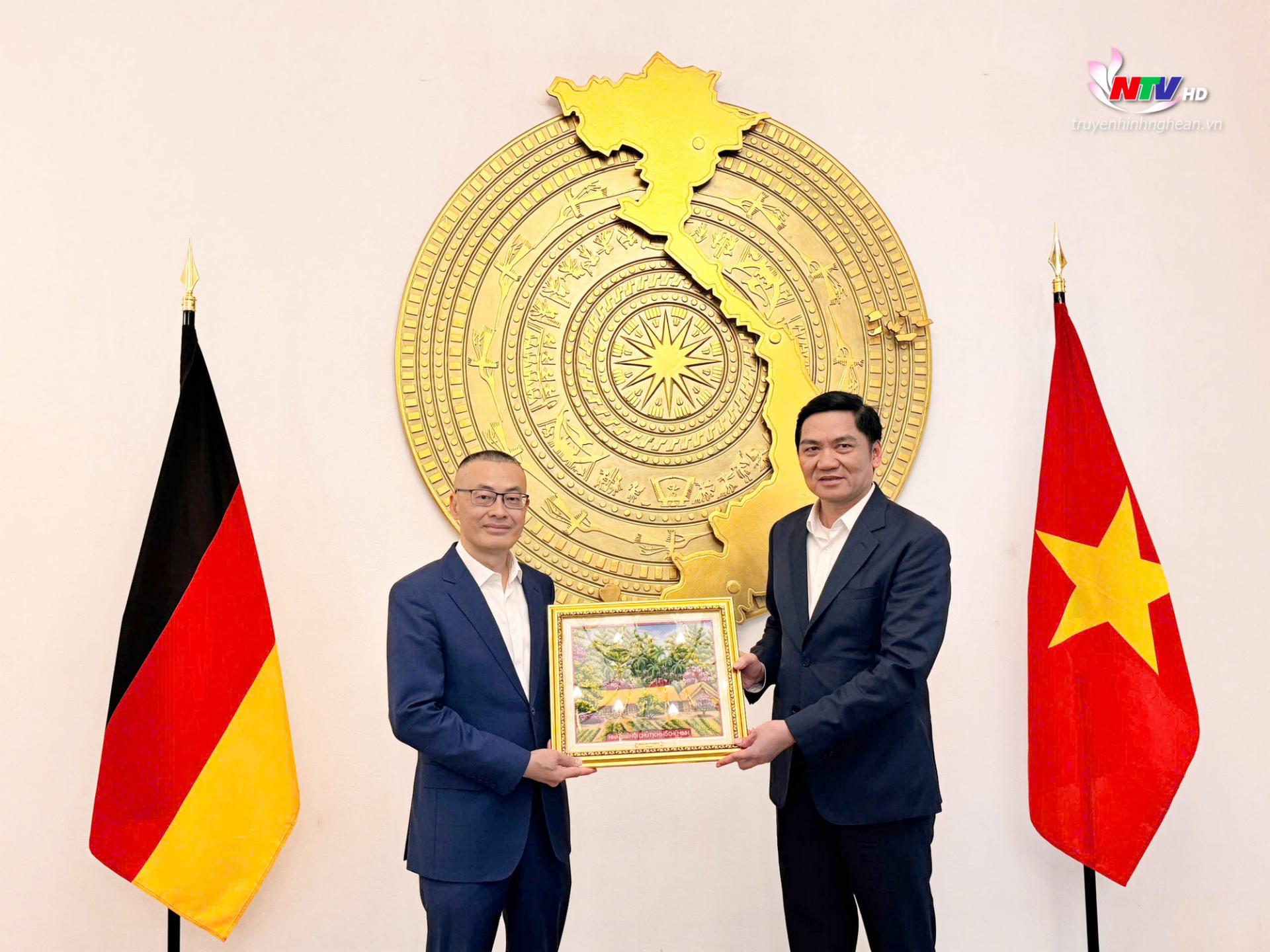 Trong bối cảnh quan hệ Việt Nam – Đức tiếp tục phát triển tích cực trên nhiều lĩnh vực, đồng chí Hoàng Nghĩa Hiếu bày tỏ mong muốn Đại sứ quán Việt Nam tại CHLB Đức tiếp tục đồng hành, hỗ trợ tỉnh Nghệ An trong việc kết nối với các đối tác phù hợp.