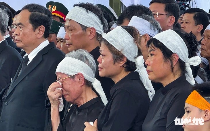 | Phu nhân nguyên Chủ tịch nước Trần Đức Lương cùng gia đình đau buồn tiễn biệt ông. |