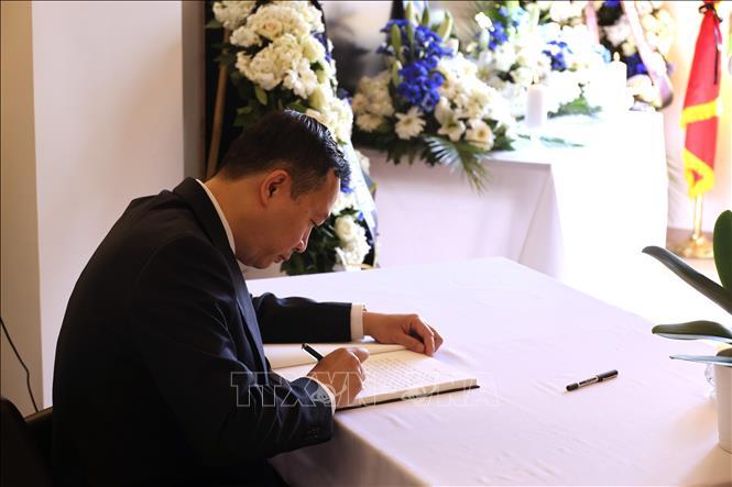 | Đại sứ Đặng Hoàng Giang ghi sổ tang. |