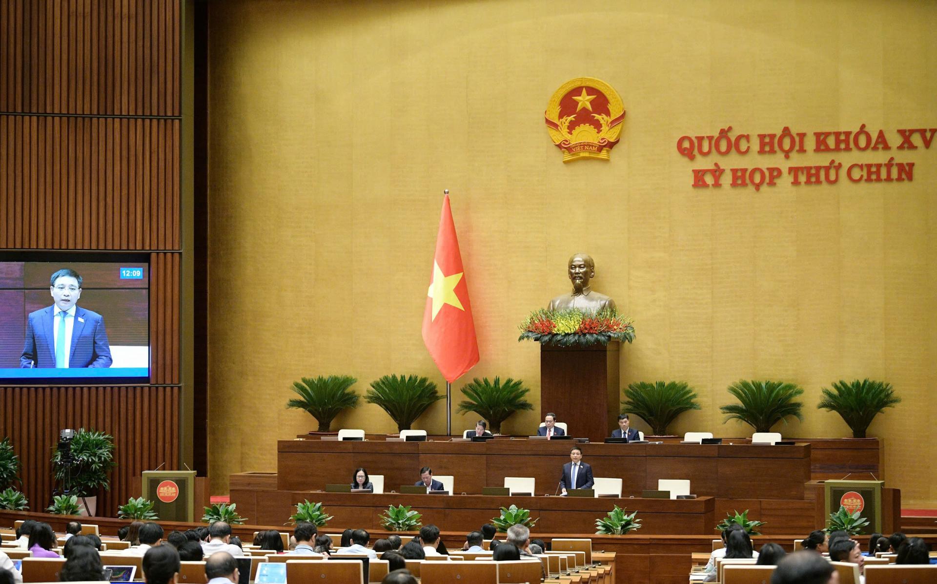 | Bộ trưởng Bộ Tài chính Nguyễn Văn Thắng trình bày Tờ trình của Chính phủ. |