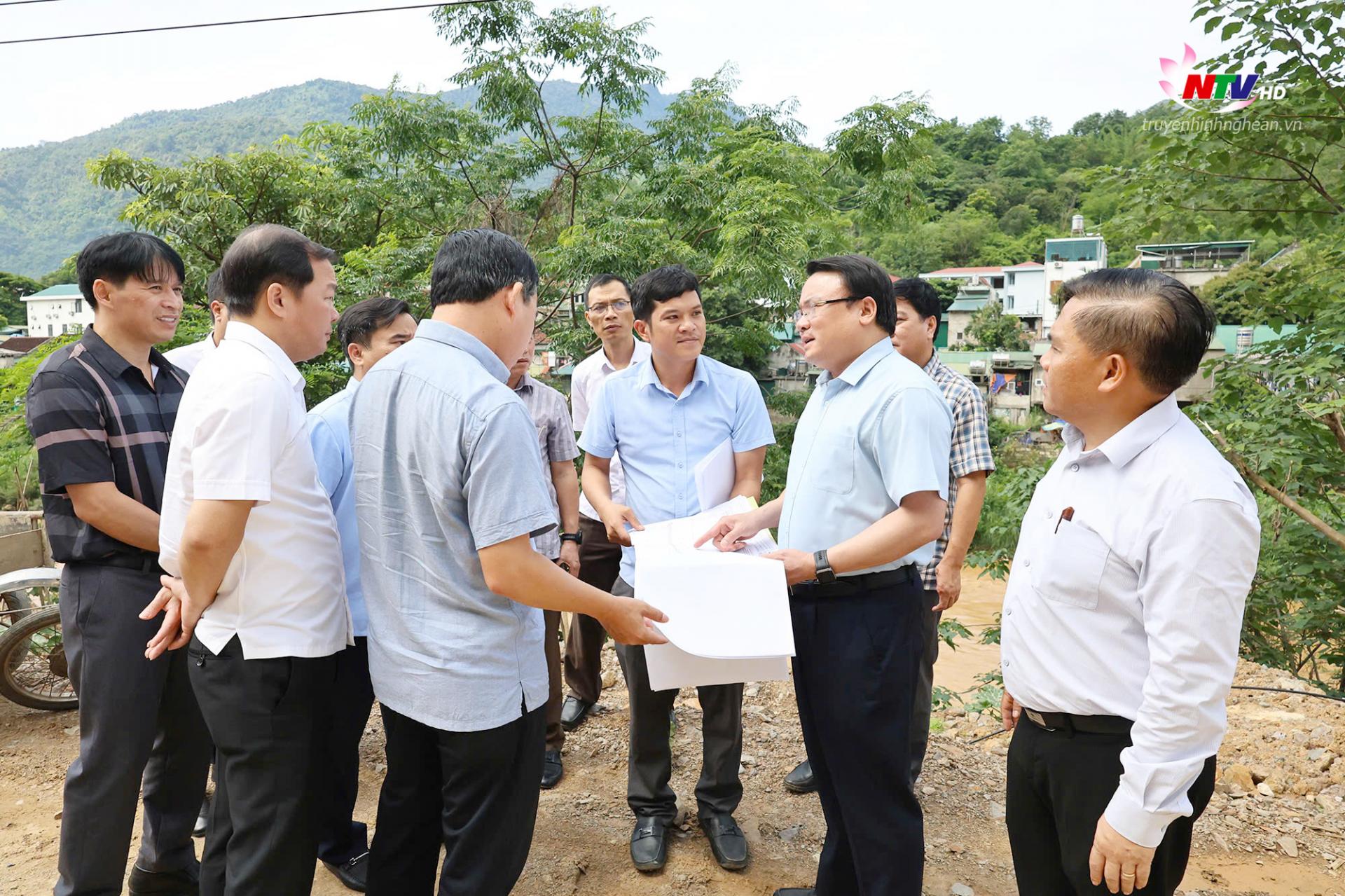 | Phó Chủ tịch UBND tỉnh Phùng Thành Vinh trao đổi tại hiện trường thi công dự án. |