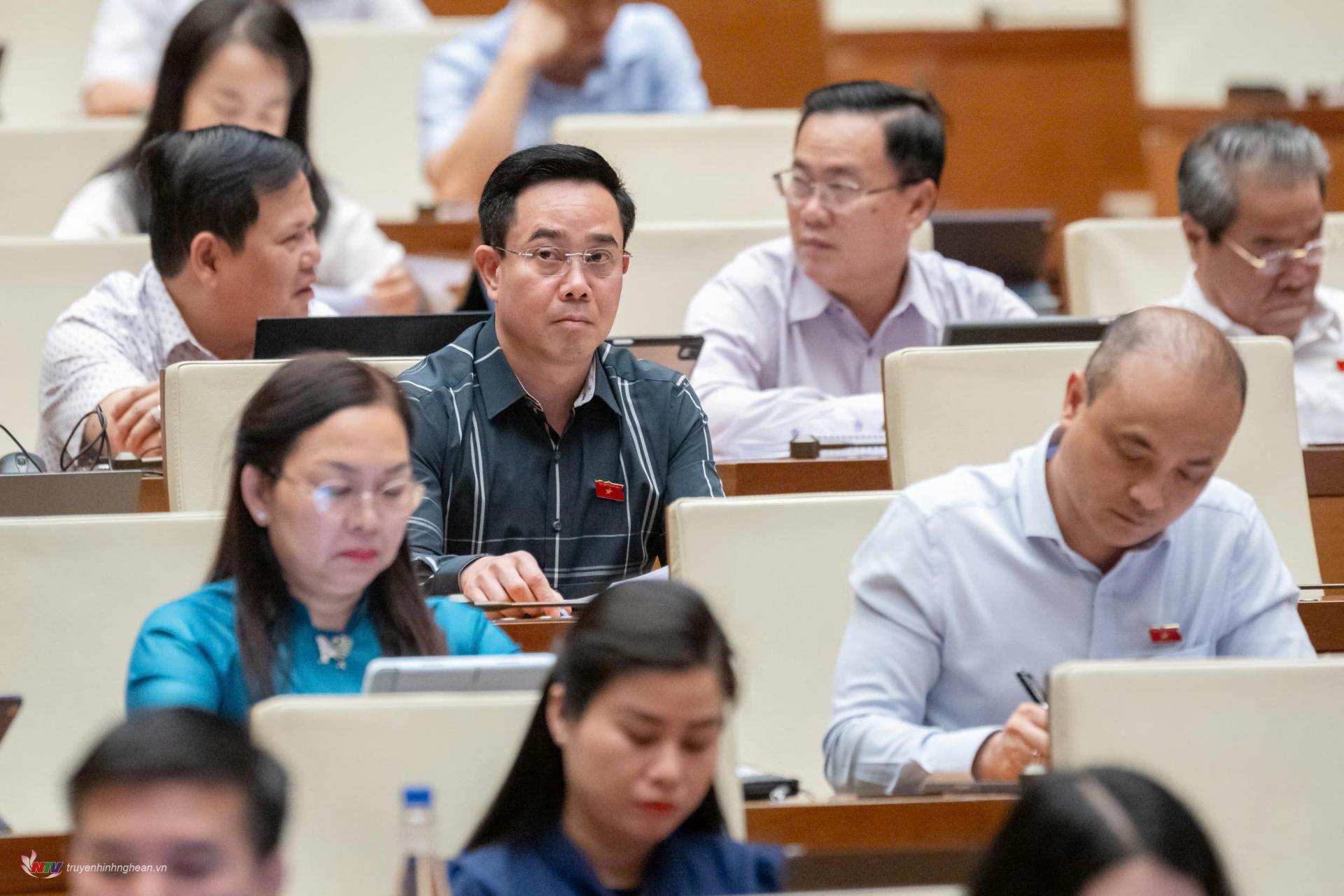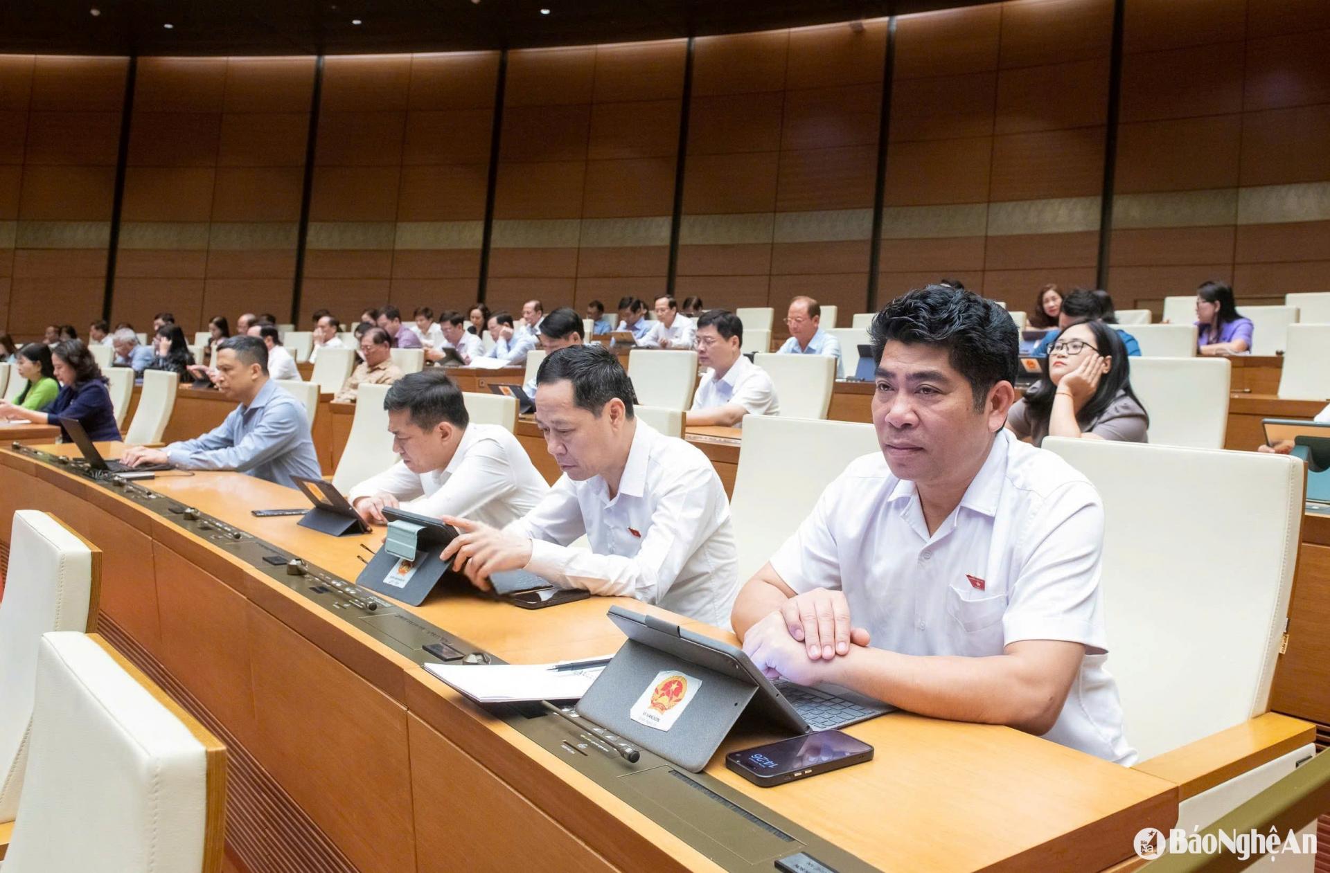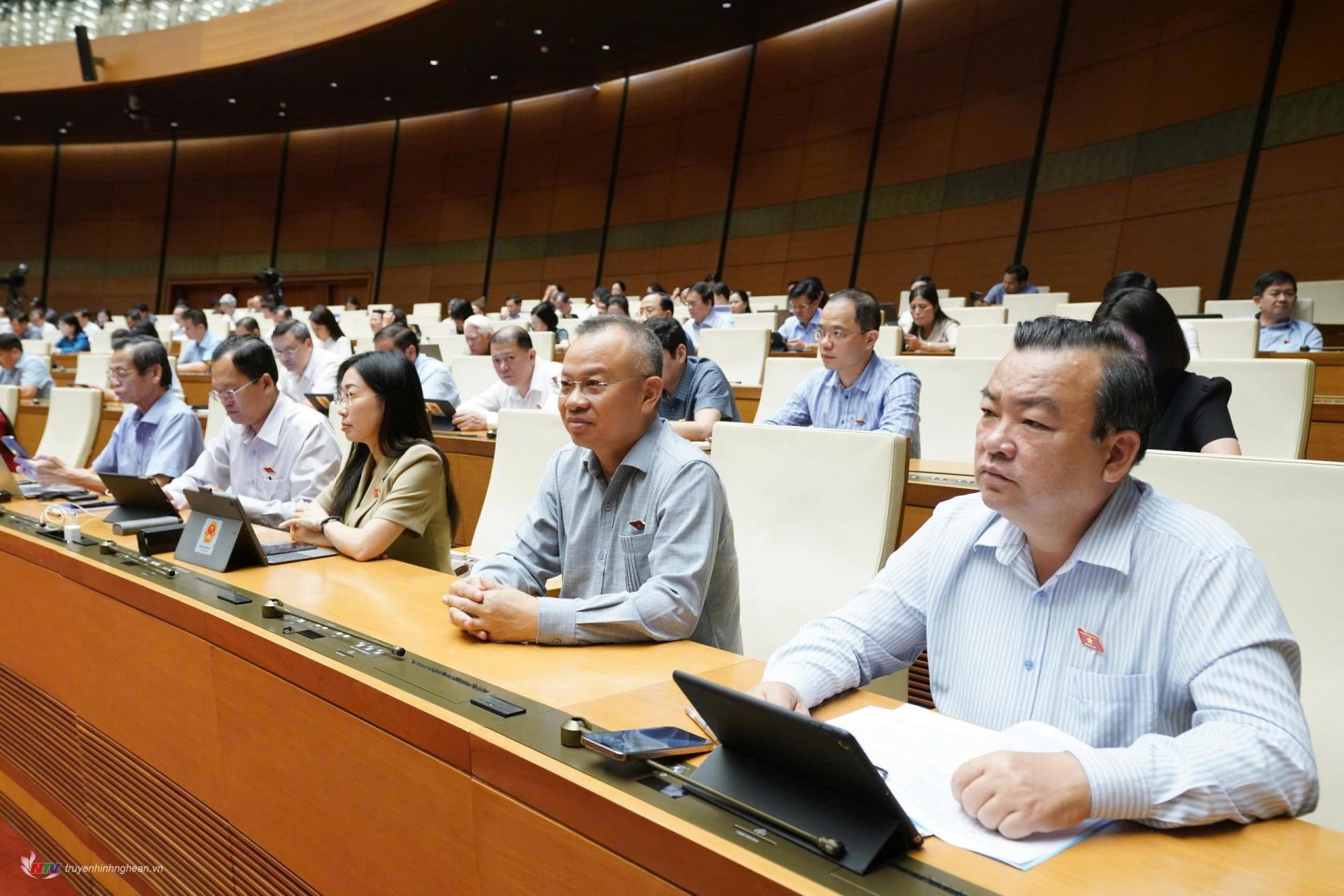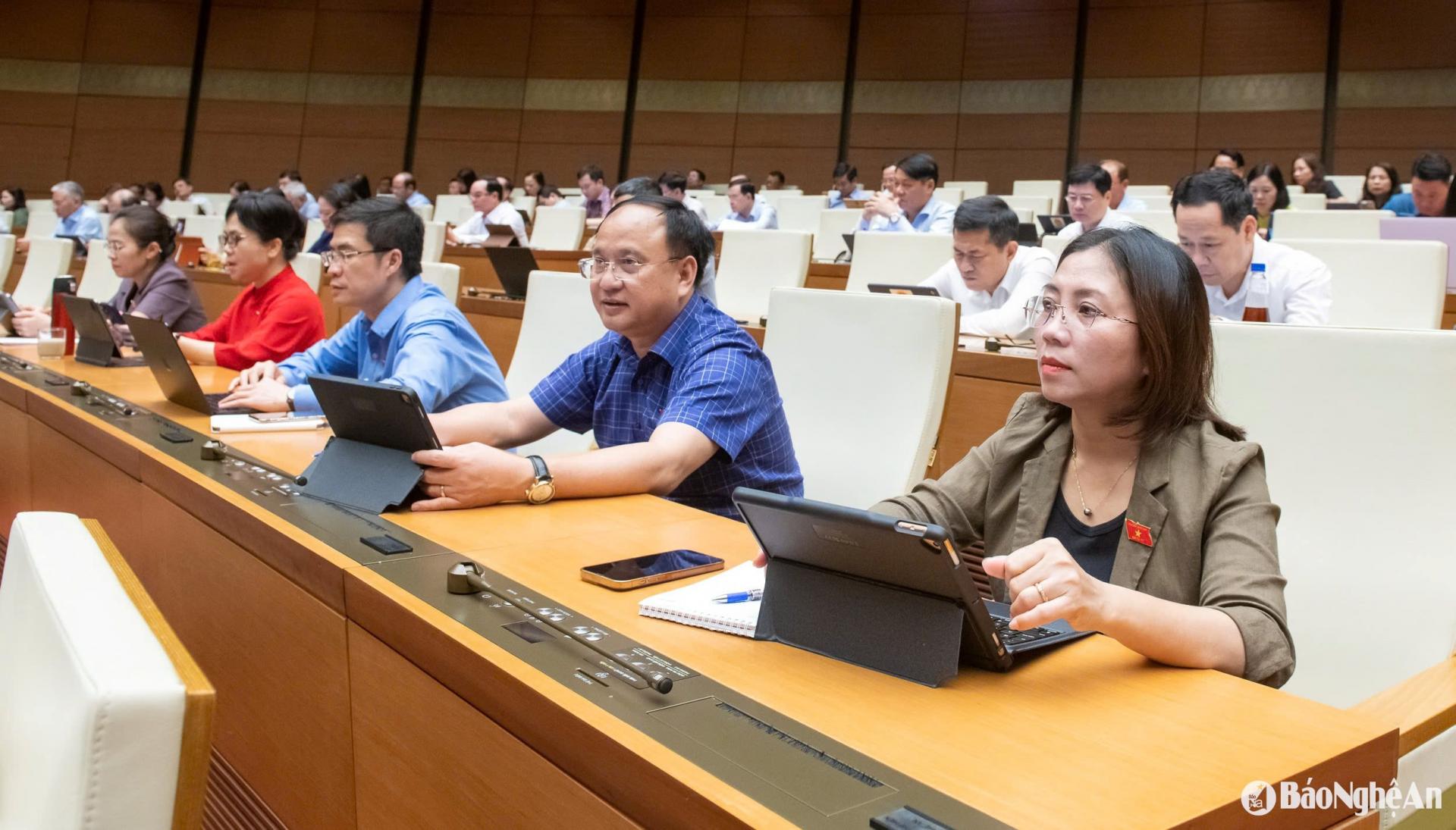 | ĐBQH đoàn Nghệ An tại phiên làm việc chiều 13/5 ở Hội trường Diên Hồng, Nhà Quốc hội. |