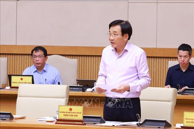 | Bộ trưởng, Chủ nhiệm Văn phòng Chính phủ Trần Văn Sơn phát biểu. Ảnh: Dương Giang/TTXVN |