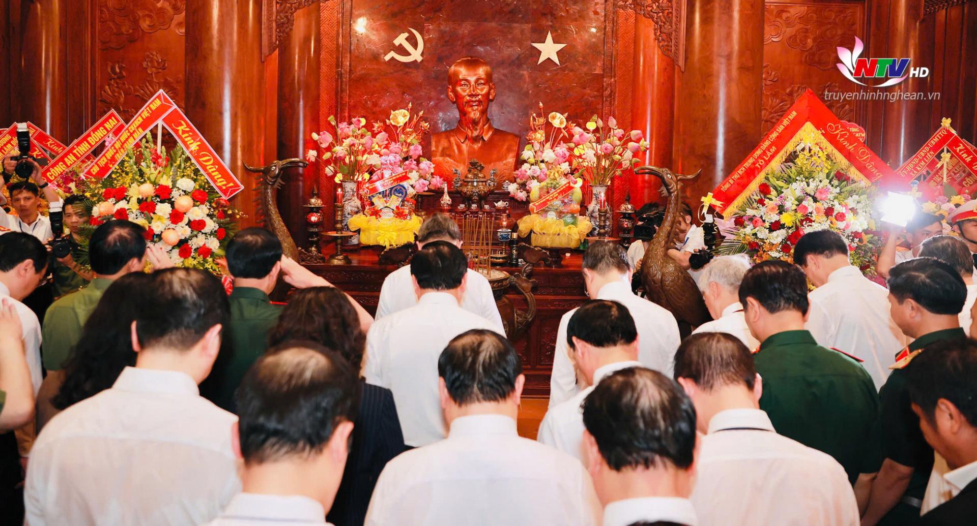 | Đoàn đại biểu Trung ương, tỉnh Nghệ An dâng hoa, dâng hương tưởng niệm Chủ tịch Hồ Chí Minh. |