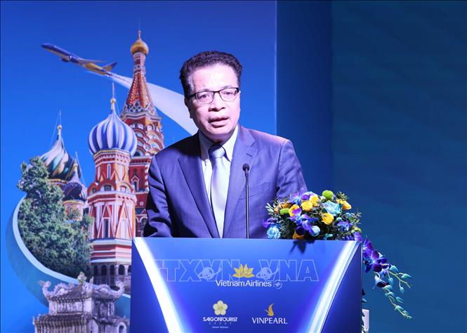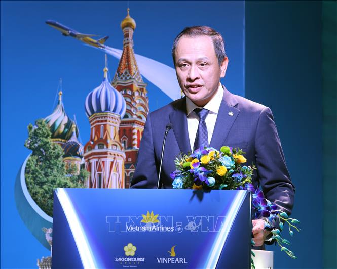 | Đại sứ Việt Nam tại Liên Bang Nga Đặng Minh Khôi phát biểu. Ảnh: Thống Nhất/TTXVN |