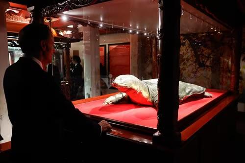 Tại đây, Tổng thống Pháp Emmanuel Macron và Phu nhân đã xem tiêu bản rùa. Tổng thống hỏi rất kỹ về tiêu bản này.
