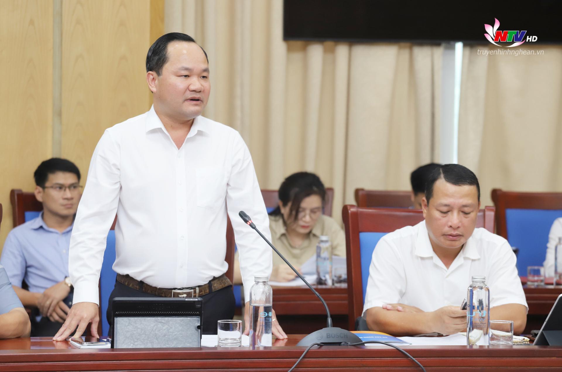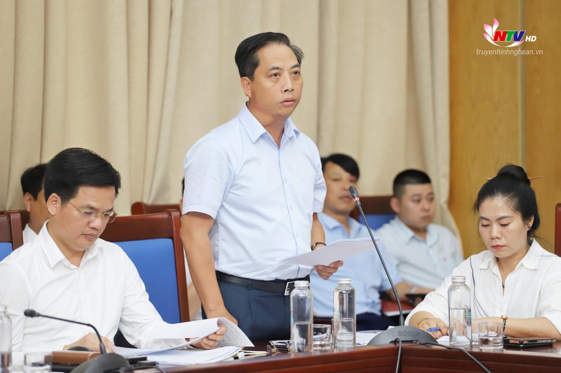 | Phó Bí thư Huyện uỷ, Chủ tịch UBND huyện Nghi Lộc Nguyễn Thanh Tùng phát biểu tại cuộc họp. |