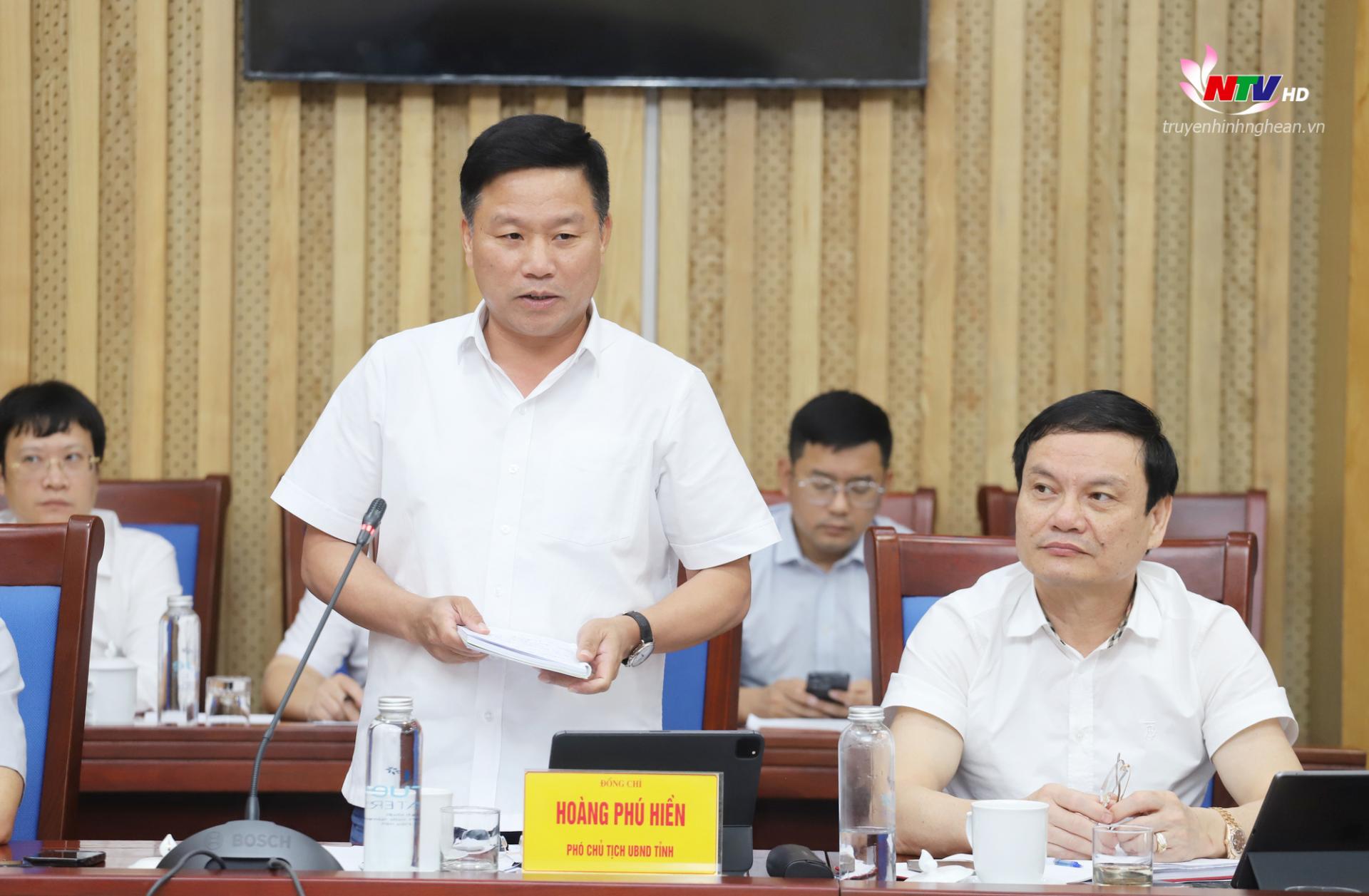 | Phó Chủ tịch UBND tỉnh Hoàng Phú Hiền phát biểu tại cuộc họp. |