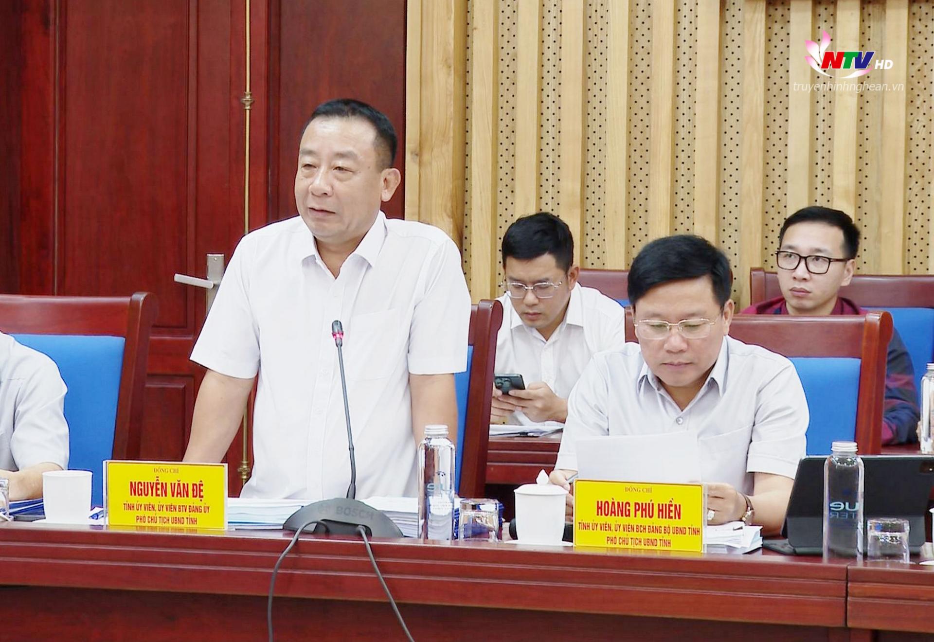 | Phó Chủ tịch UBND tỉnh Nguyễn Văn Đệ phát biểu tại cuộc họp. |