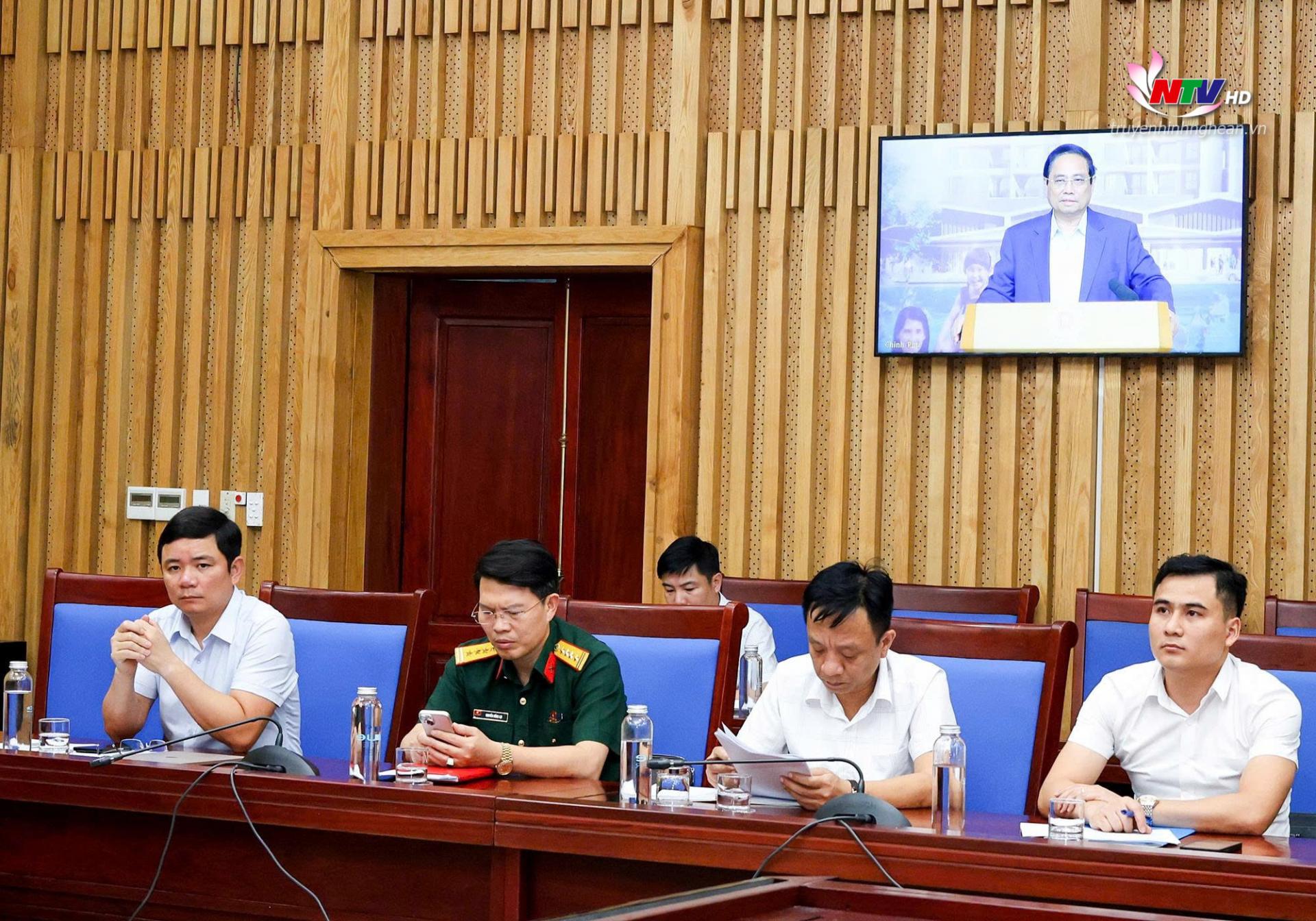 | Tại điểm cầu Nghệ An, Phó Chủ tịch UBND tỉnh Hoàng Phú Hiền chủ trì. |