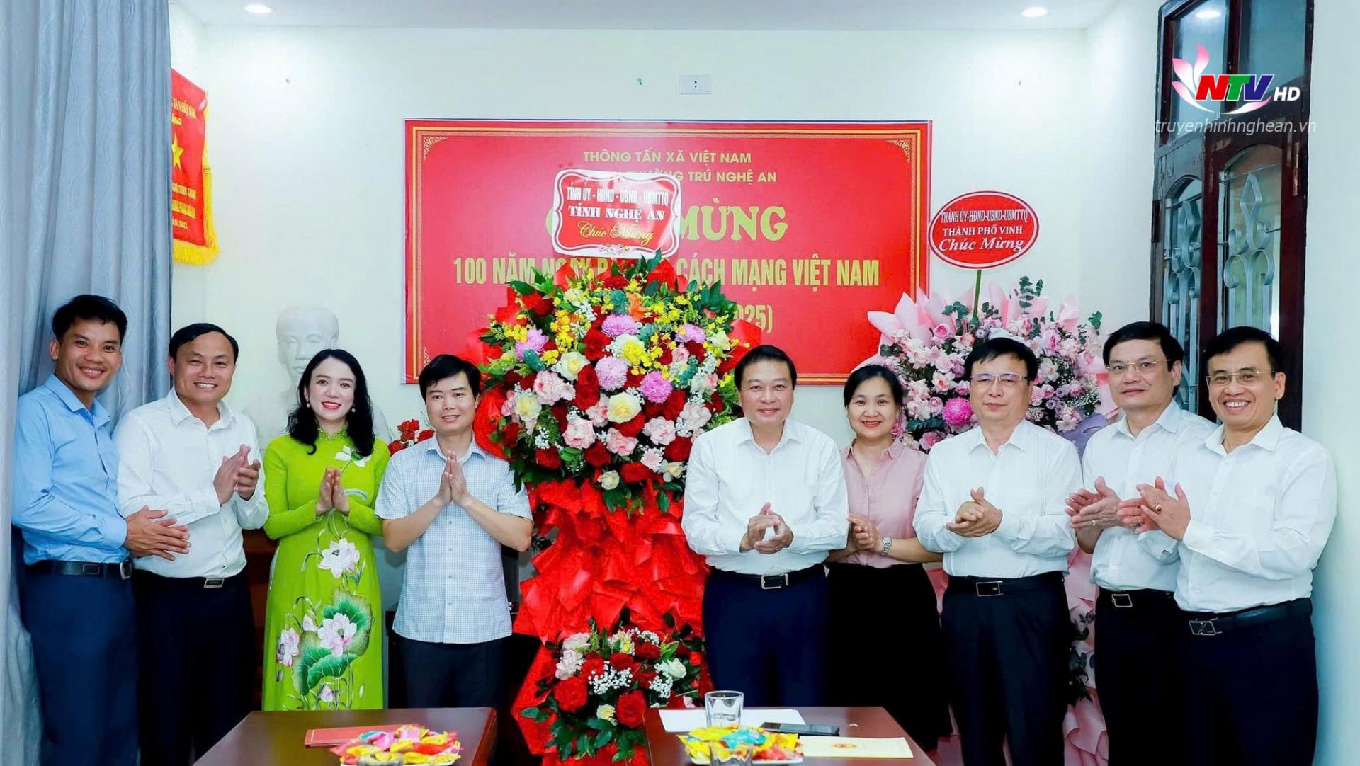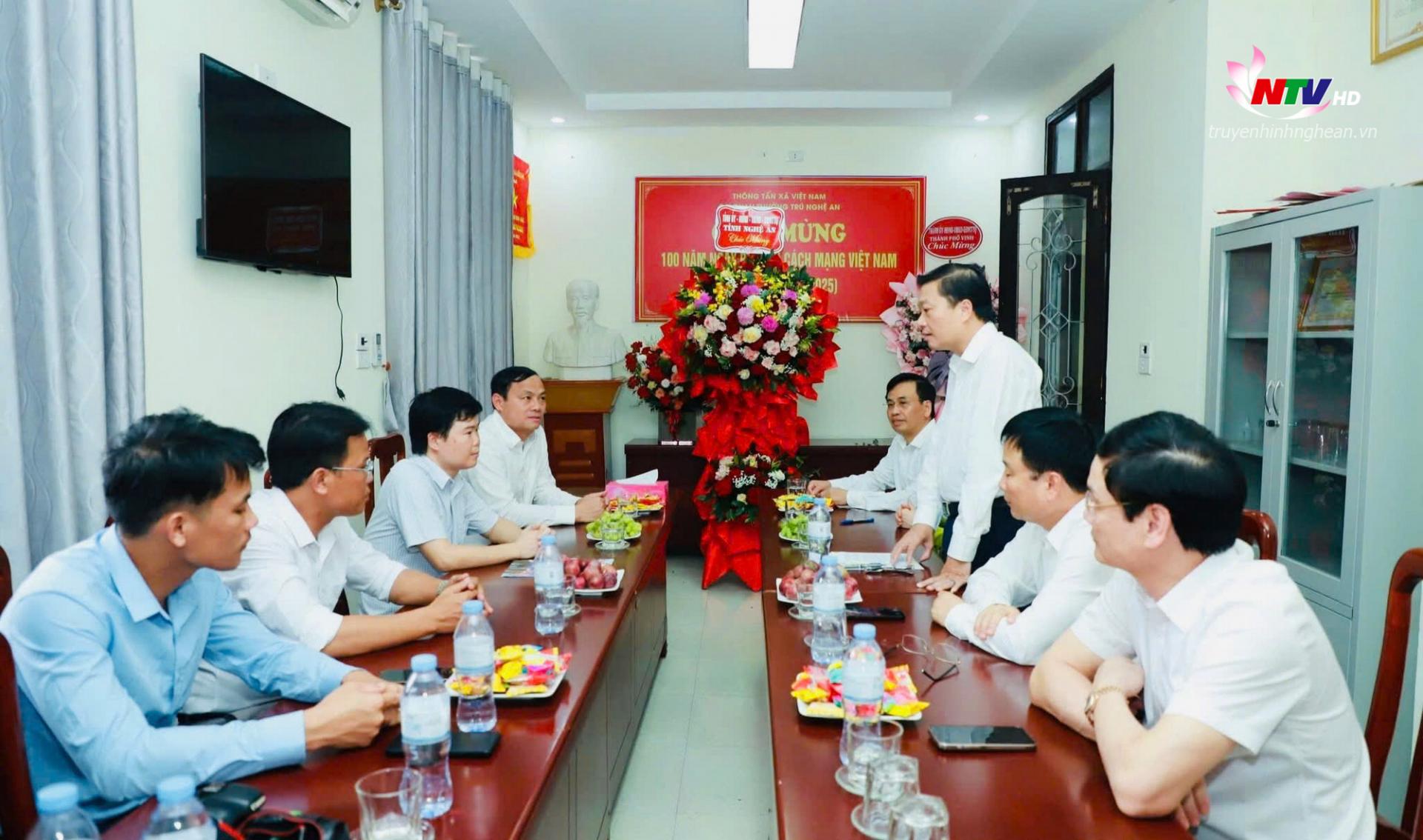 Chiều cùng ngày, Chủ tịch UBND tỉnh Lê Hồng Vinh và đoàn đã đến thăm, chúc mừng Cơ quan thường trú TTXVN tại Nghệ An.