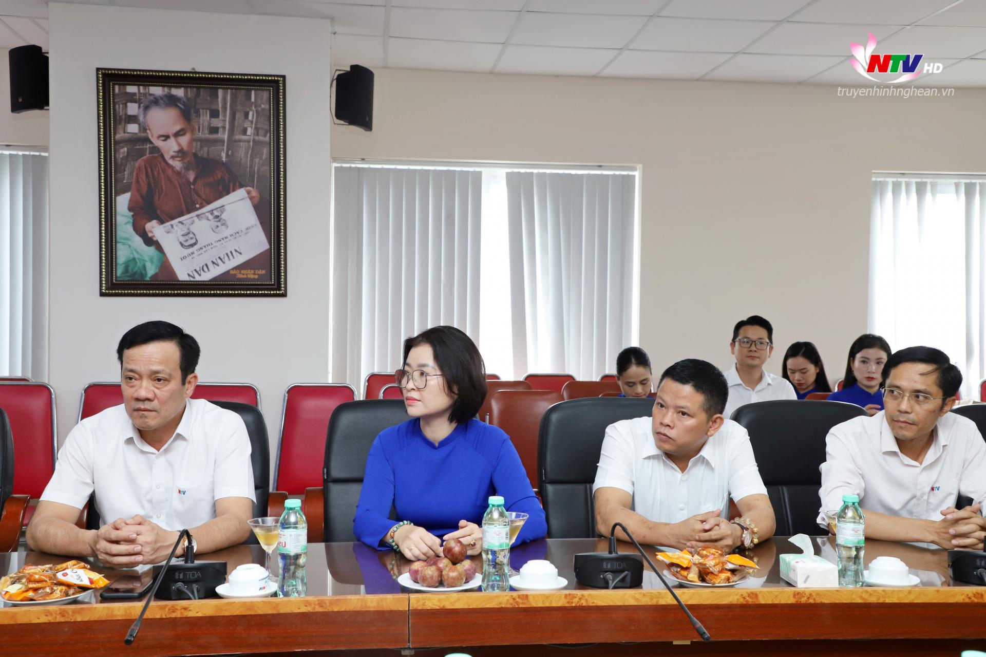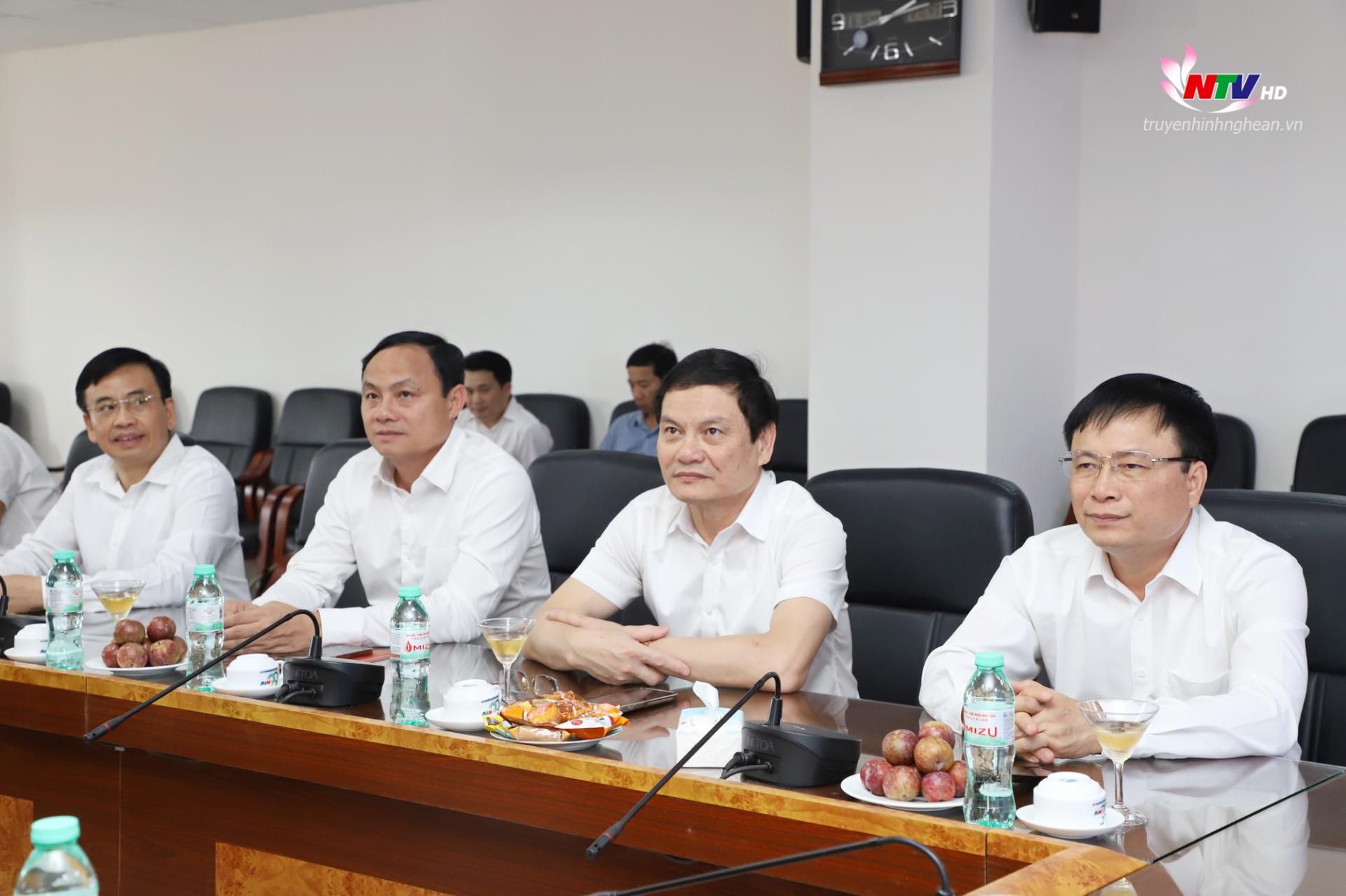 | Các đồng chí trong Ban Chấp hành Đảng bộ tỉnh, lãnh đạo các Sở ban ngành tham gia đoàn thăm, chúc mừng Đài PT-TH Nghệ An. |