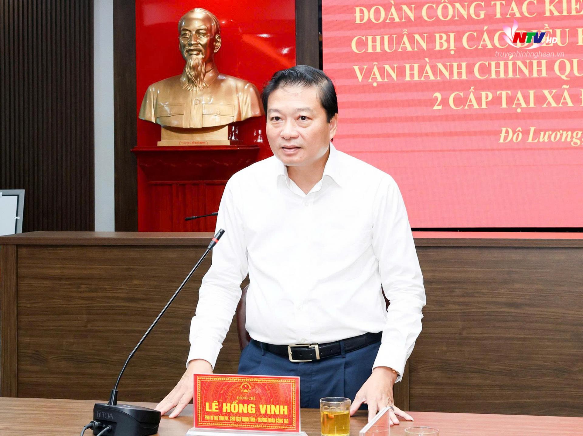 Chủ tịch UBND tỉnh Lê Hồng Vinh đánh giá cao sự chủ động, quyết liệt, bài bản của xã Đô Lương (mới) và huyện Đô Lương trong quá trình triển khai mô hình chính quyền địa phương hai cấp; thể hiện rõ qua việc tiếp cận 1.065 nhiệm vụ thuộc cấp xã và các phòng chuyên môn cấp xã đã vào cuộc; Đồng thời giao lãnh đạo huyện Đô Lương chủ trì chuẩn bị đầy đủ các thủ tục cần thiết để tiến hành bàn giao từ chính quyền địa phương 3 cấp sang 2 cấp ở tất cả 6 xã mới; Rà soát lại hệ thống cơ sở hạ tầng của các xã, đảm bảo điều kiện hoạt động của Trung tâm Phục vụ hành chính công cấp xã thực sự vận hành hiệu quả.