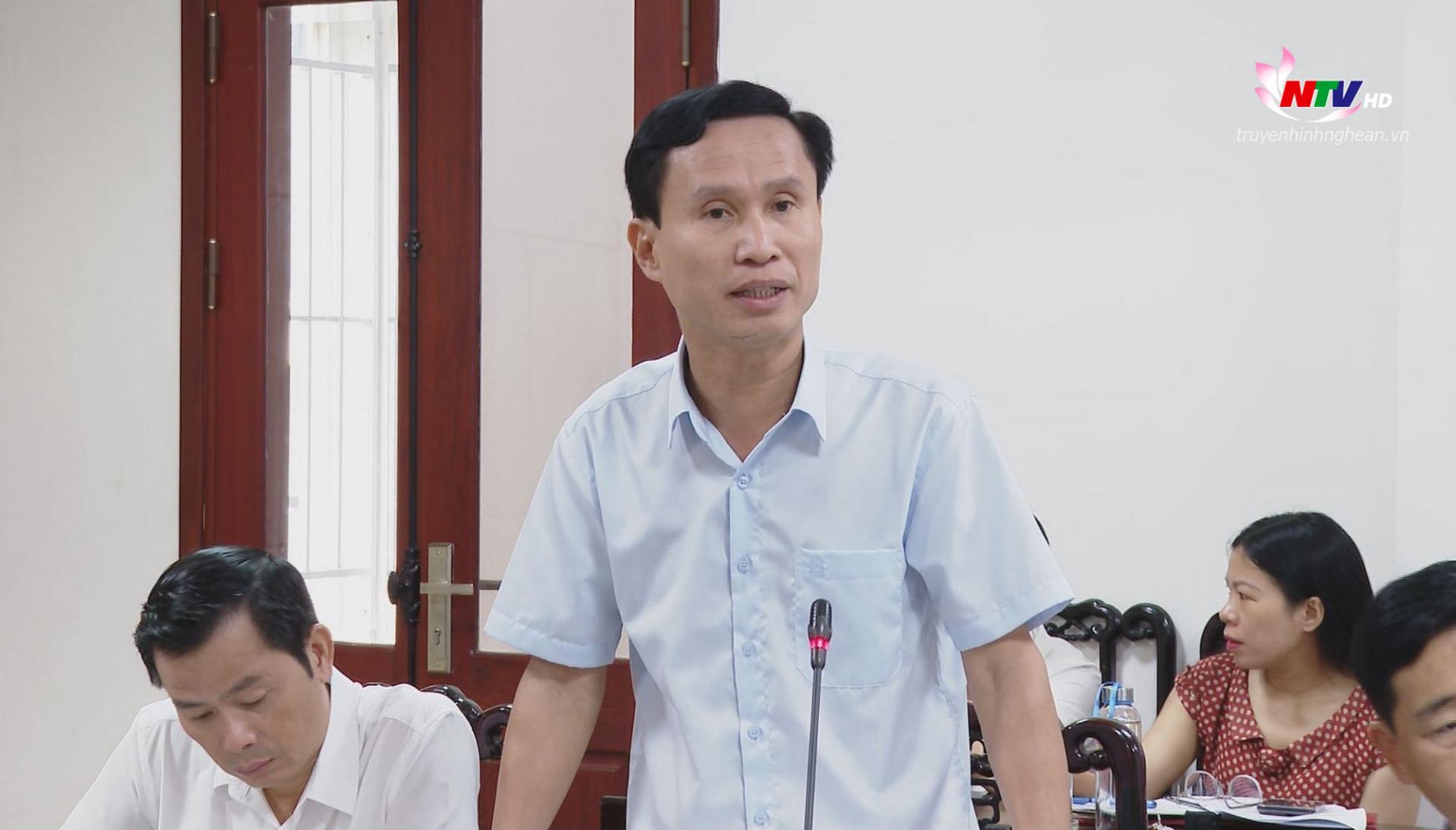 | Chủ tịch UBND huyện Yên Thành Vũ Tuấn Dũng phát biểu báo cáo về các nội dung liên quan đến kiến nghị của công dân. |