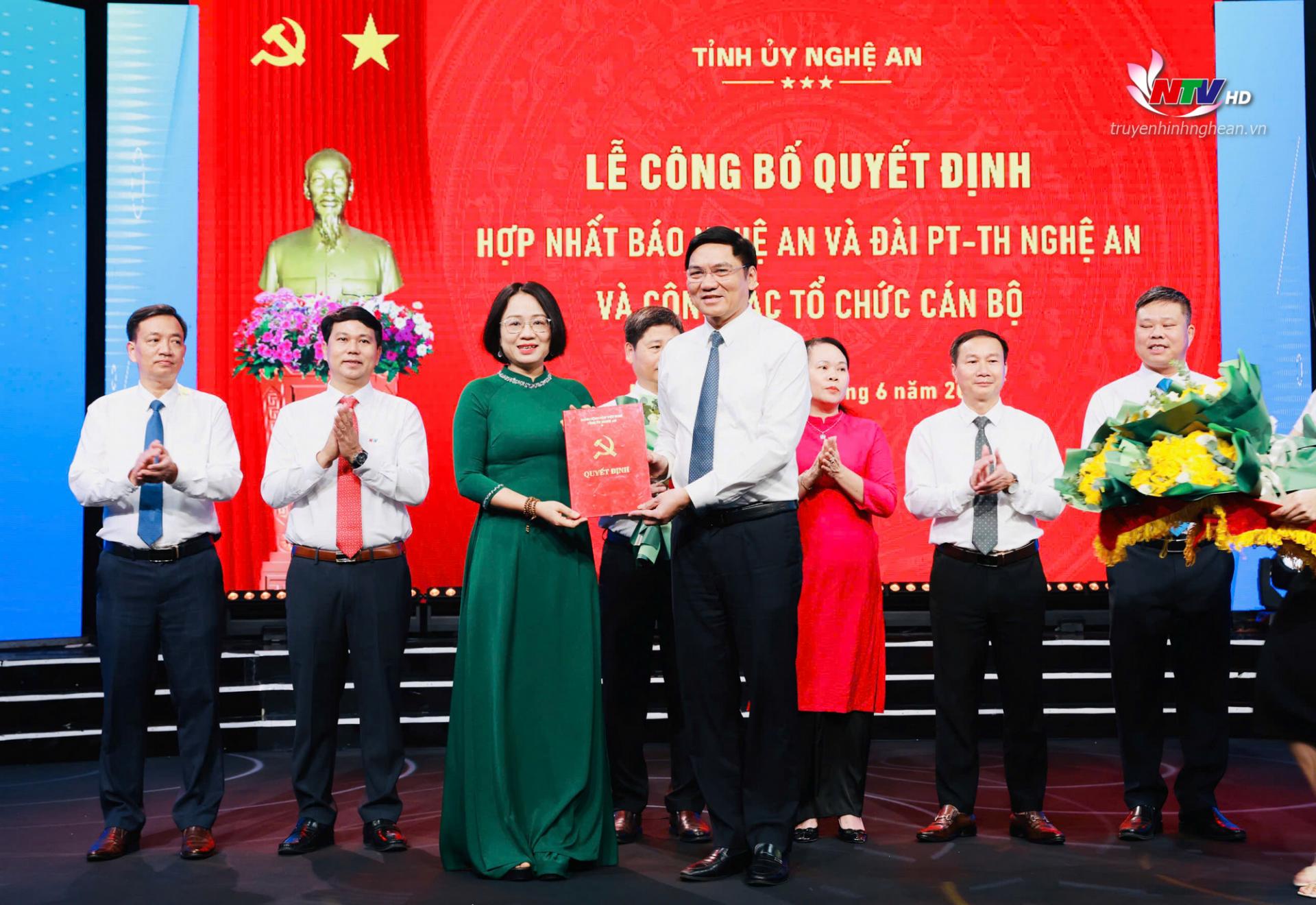 Tại buổi lễ, lãnh đạo Ban Tổ chức tỉnh ủy đã công bố quyết định số 3974 ngày 26/6/2025 của Ban Thường vụ Tỉnh ủy Nghệ An điều động, bổ nhiệm đồng chí Trần Minh Ngọc – Giám đốc Đài PTTH Nghệ An giữ chức Tổng Biên tập Báo và Đài PTTH Nghệ An. Điều động, bổ nhiệm 6 đồng chí giữ chức Phó Tổng Biên tập Báo và Đài PTTH Nghệ An gồm: đồng chí Trần Văn Hùng – Phó Tổng Biên tập Báo Nghệ An; đồng chí Trần Hữu Nghĩa - Phó Tổng Biên tập Báo Nghệ An; đồng chí Nguyễn Thị Thu Hương - Phó Tổng Biên tập Báo Nghệ An; đồng chí Trần Thị Huyền – Phó Giám đốc Đài PTTH Nghệ An; đồng chí Nguyễn Trung Thảo - Phó Giám đốc Đài PTTH Nghệ An; đồng chí Phan Văn Thắng - Phó Giám đốc Đài PTTH Nghệ An.