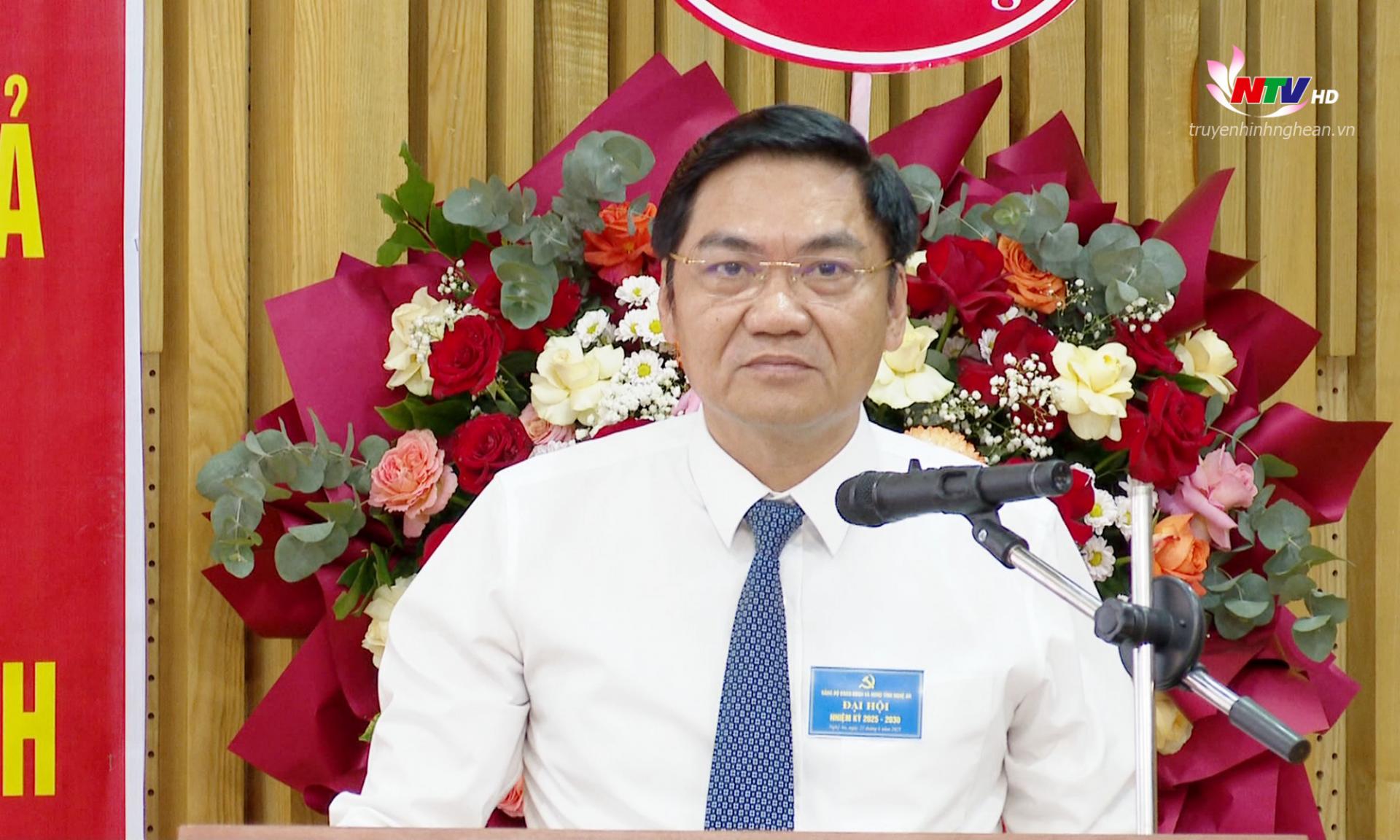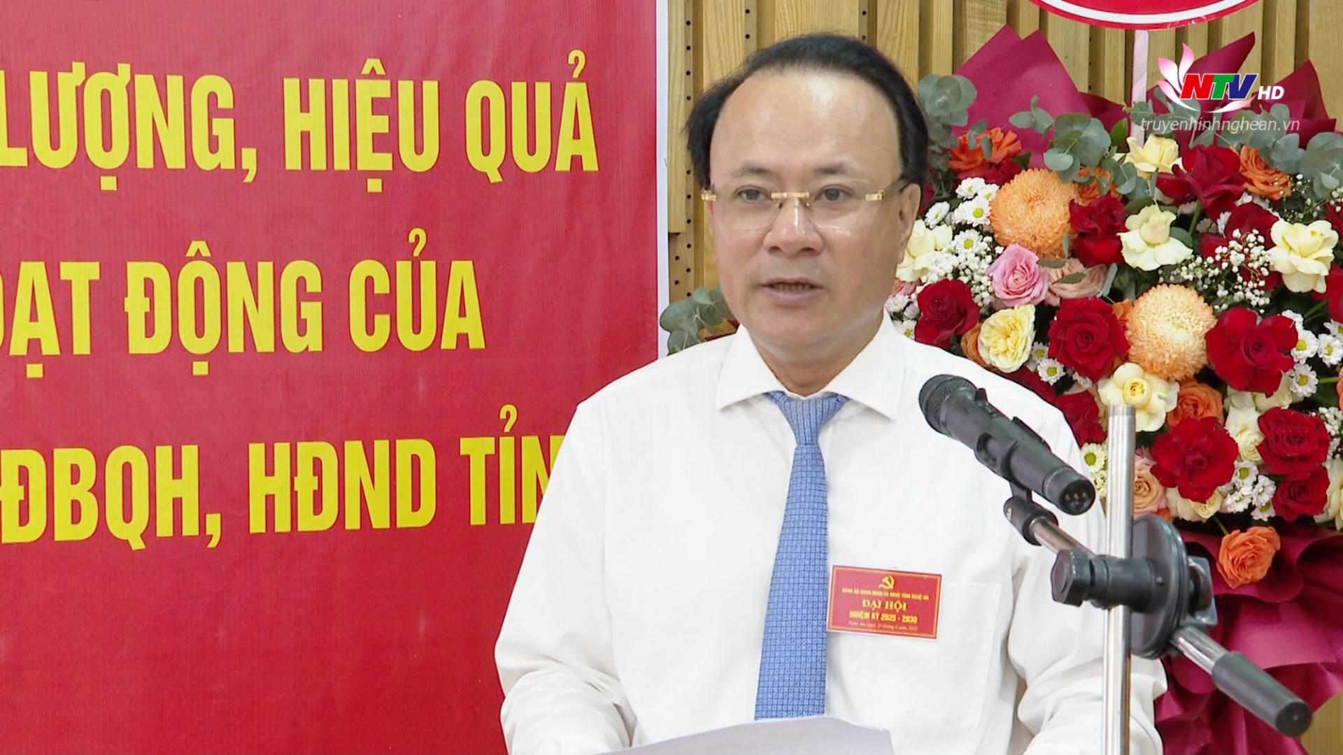 Phát biểu chỉ đạo tại Đại hội, đồng chí Hoàng Nghĩa Hiếu - Phó Bí thư Thường trực Tỉnh ủy, Chủ tịch HĐND tỉnh, Bí thư Đảng ủy Các cơ quan Đảng tỉnh chúc mừng và biểu dương những thành tích mà Đảng bộ Đoàn ĐBQH và HĐND tỉnh đã đạt được trong nhiệm kỳ 2020 - 2025.