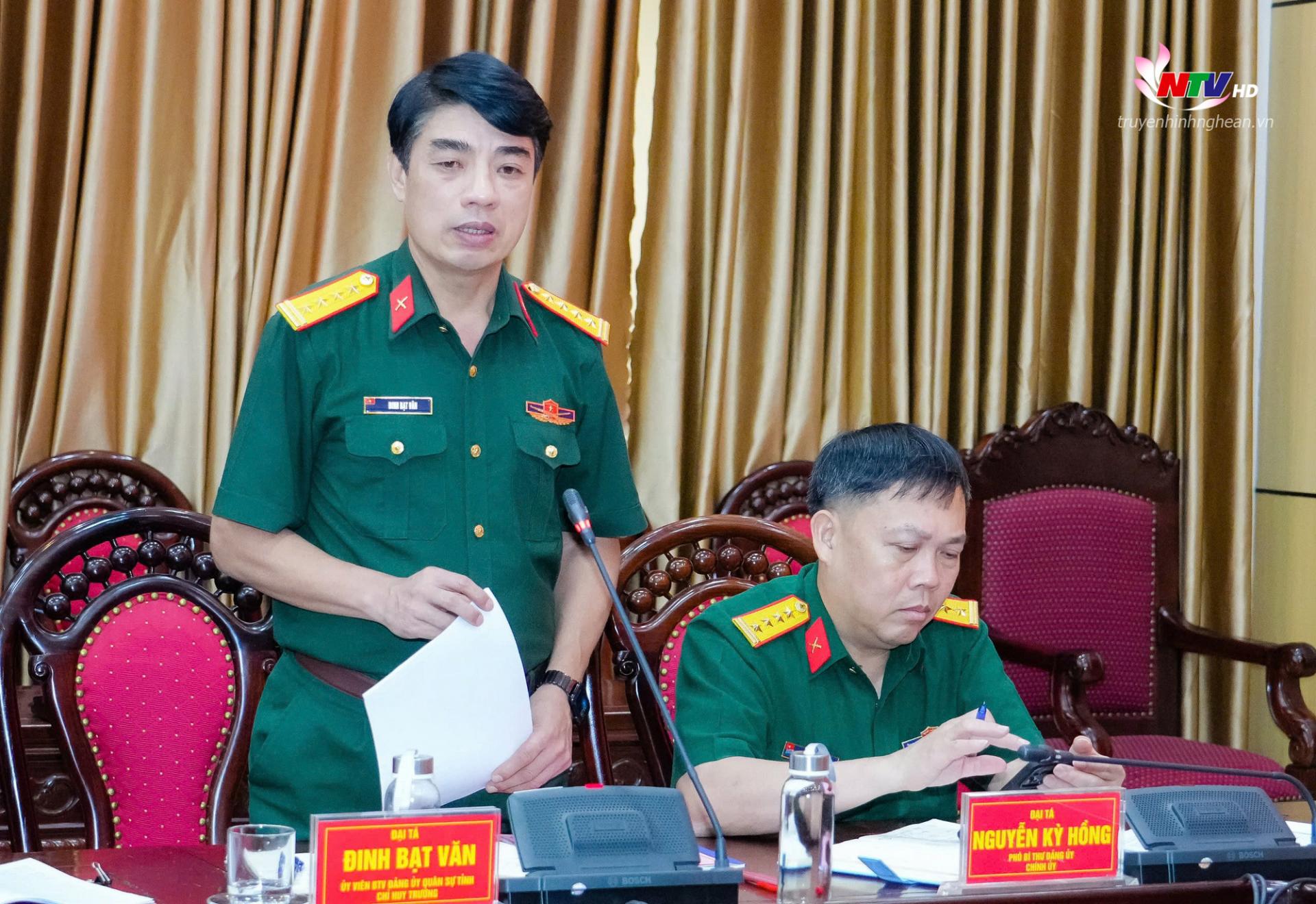 | Đại tá Đinh Bạt Văn - Chỉ huy trưởng Bộ CHQS tỉnh phát biểu tại hội nghị. |