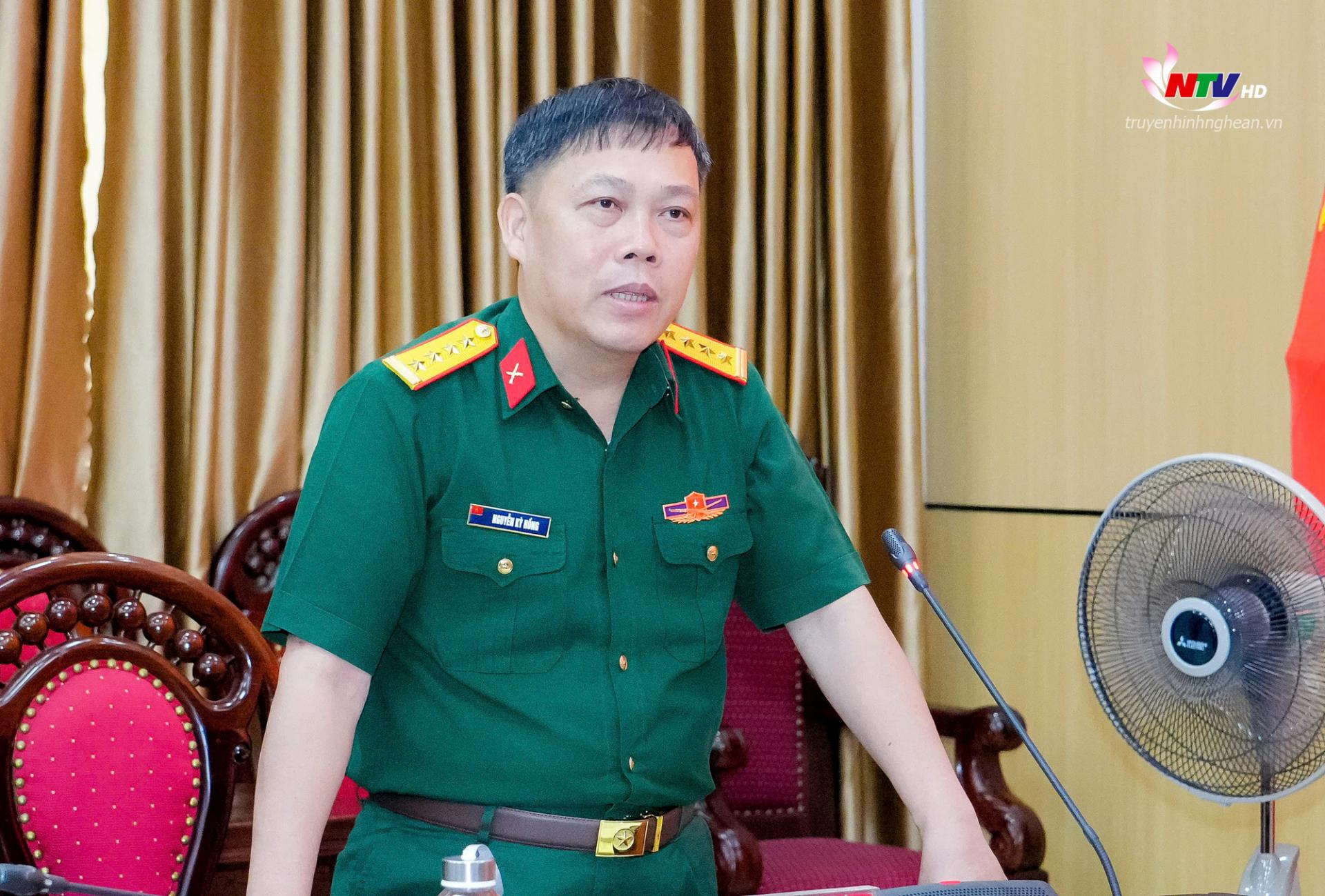 | Đại tá Nguyễn Kỳ Hồng - Phó Bí thư Đảng ủy, Chính ủy Bộ CHQS tỉnh phát biểu tại hội nghị. |