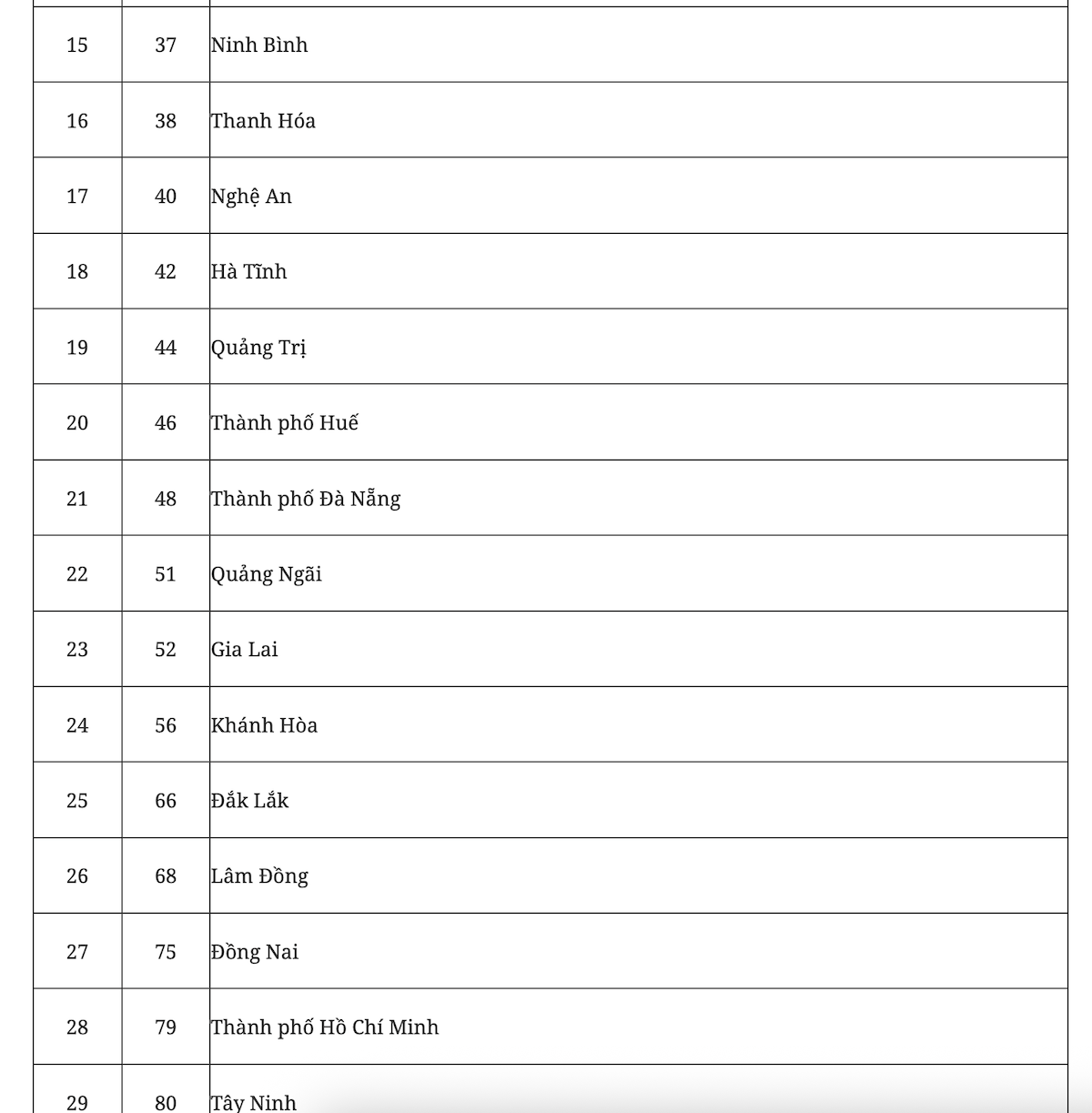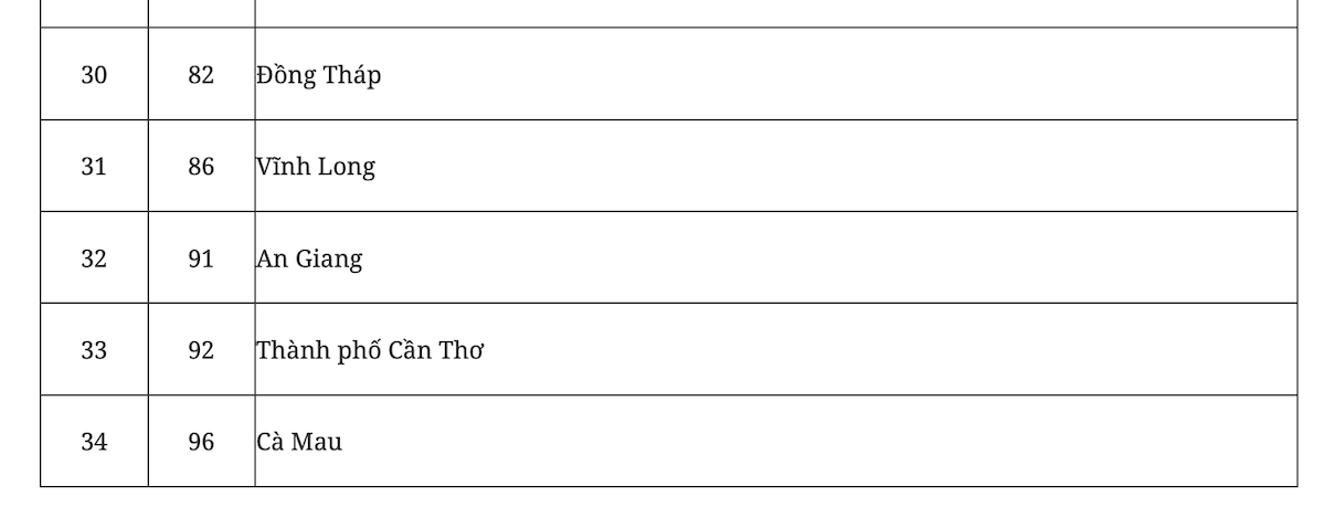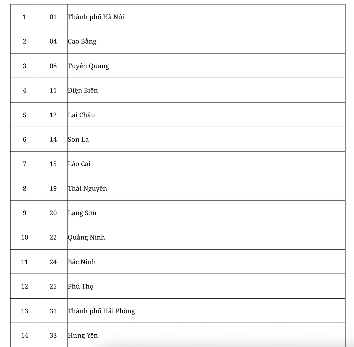 | Số thứ tự và mã số hành chính dự kiến của 34 tỉnh, thành sau sáp nhập. Ảnh chụp màn hình |