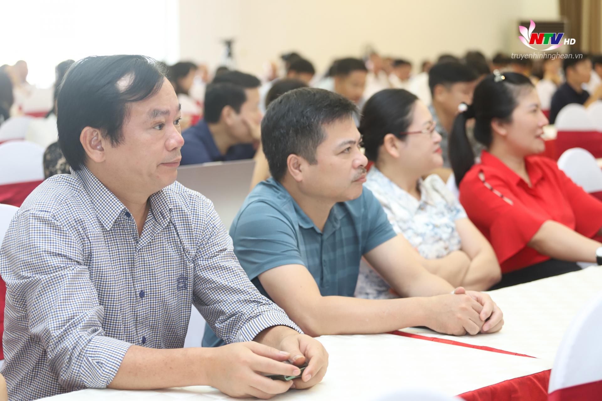 | Các đại biểu dự hội nghị tại điểm cầu chính tỉnh Nghệ An. |