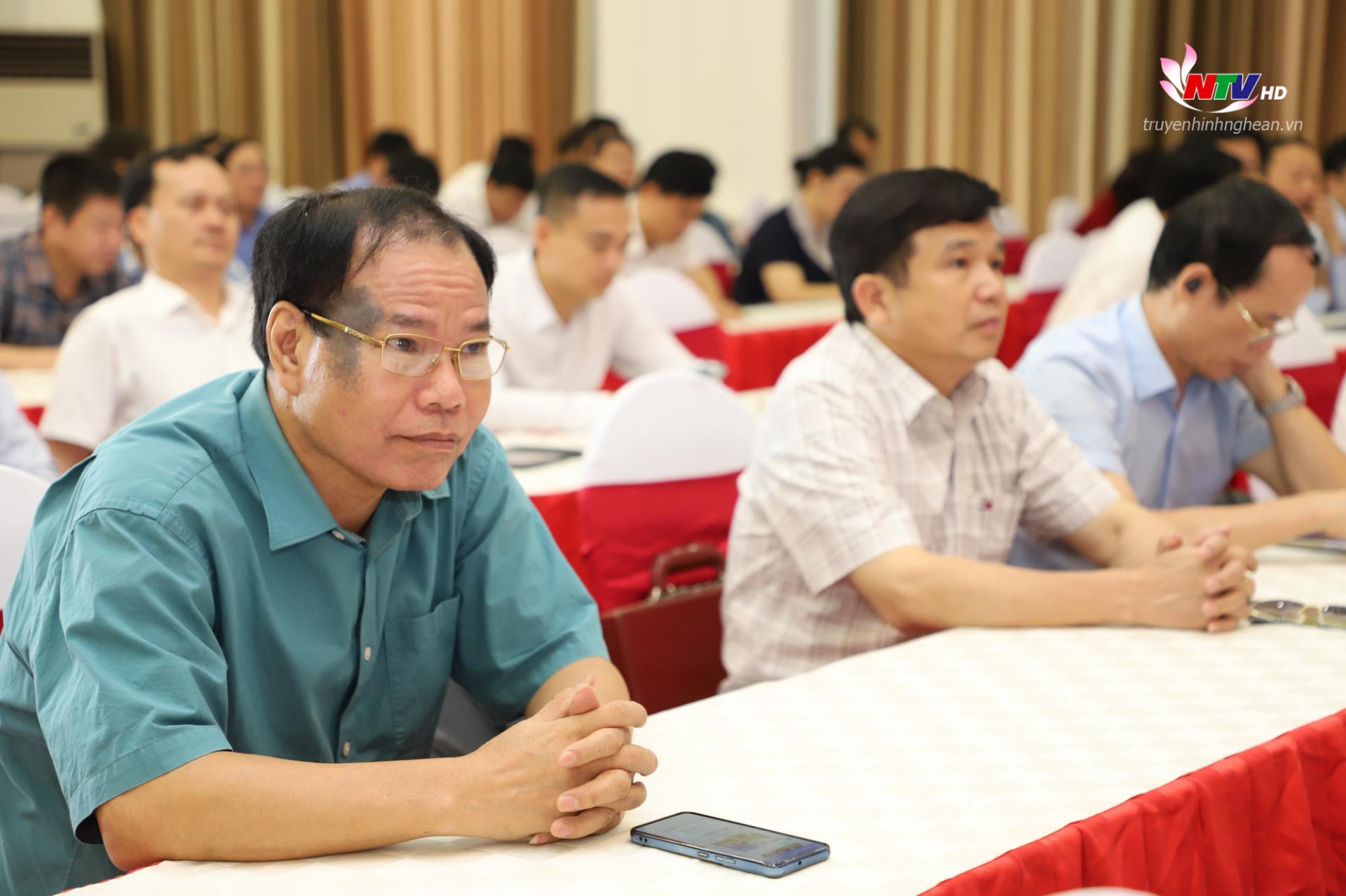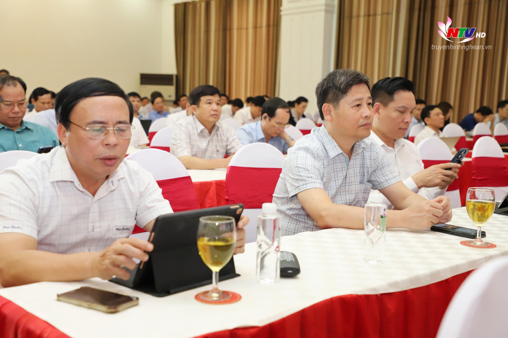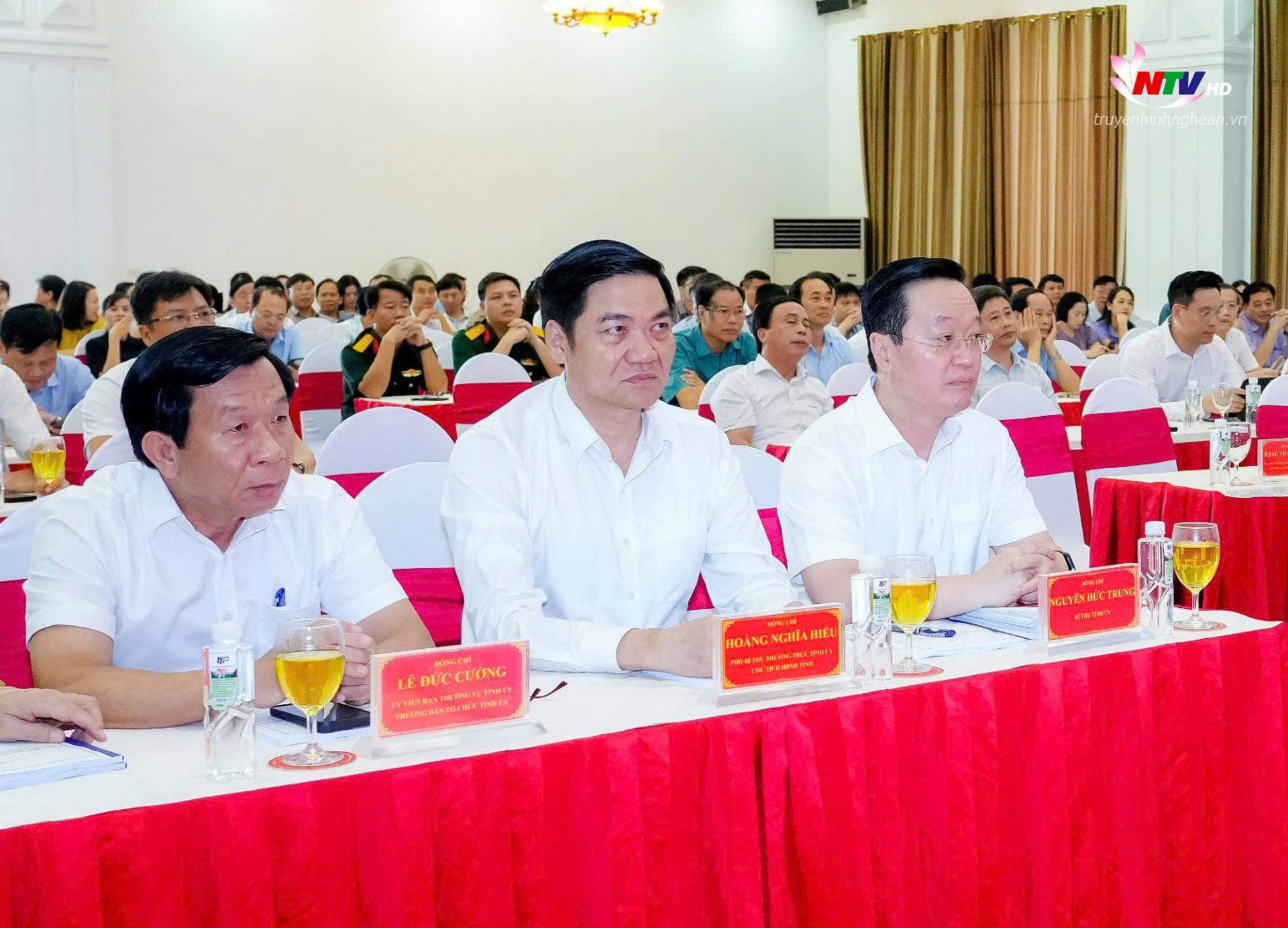 Tham dự hội nghị tại các điểm cầu của Nghệ An có các đồng chí: Nguyễn Đức Trung - Bí thư Tỉnh ủy; Hoàng Nghĩa Hiếu - Phó Bí thư Thường trực Tỉnh ủy, Chủ tịch HĐND tỉnh; Lê Hồng Vinh - Phó Bí thư Tỉnh ủy, Chủ tịch UBND tỉnh; Các đồng chí Ủy viên Ban Thường vụ Tỉnh ủy, HĐND, UBND, Ủy ban MTTQ tỉnh; cùng đội ngũ cán bộ chủ chốt các cấp từ tỉnh xuống cơ sở.