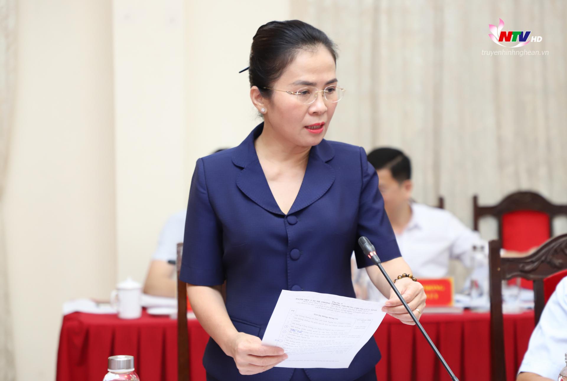 | Giám đốc Sở Y tế Lê Thị Hoài Chung phát biểu tại cuộc họp. |