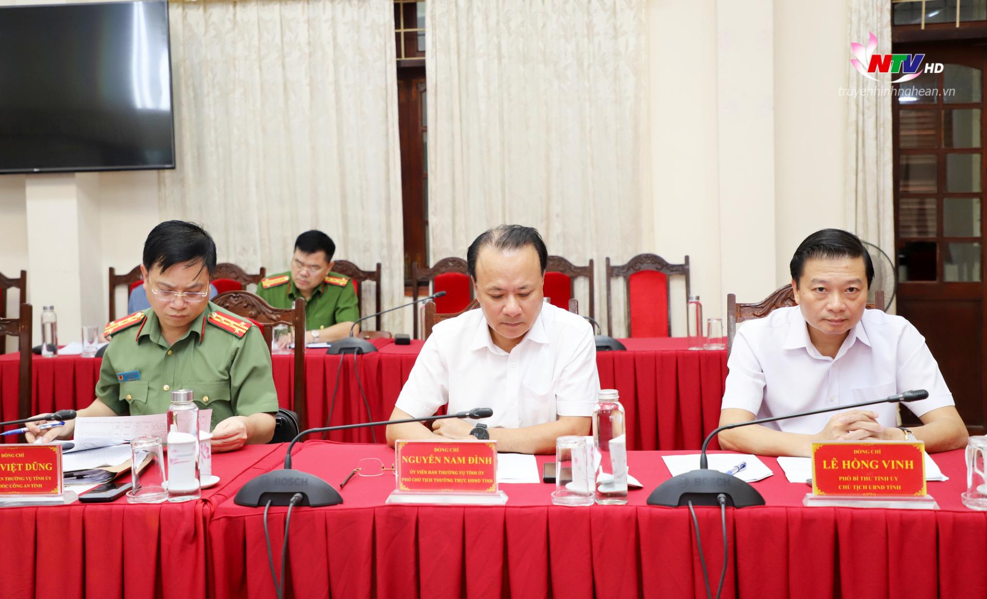 | Phó Bí thư Tỉnh uỷ, Chủ tịch UBND tỉnh Lê Hồng Vinh cùng các đồng chí Uỷ viên BTV Tỉnh uỷ dự cuộc họp. |