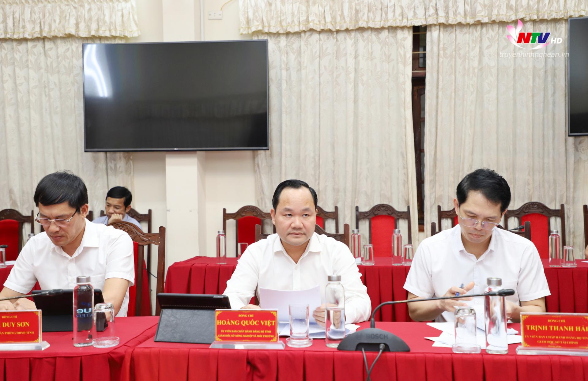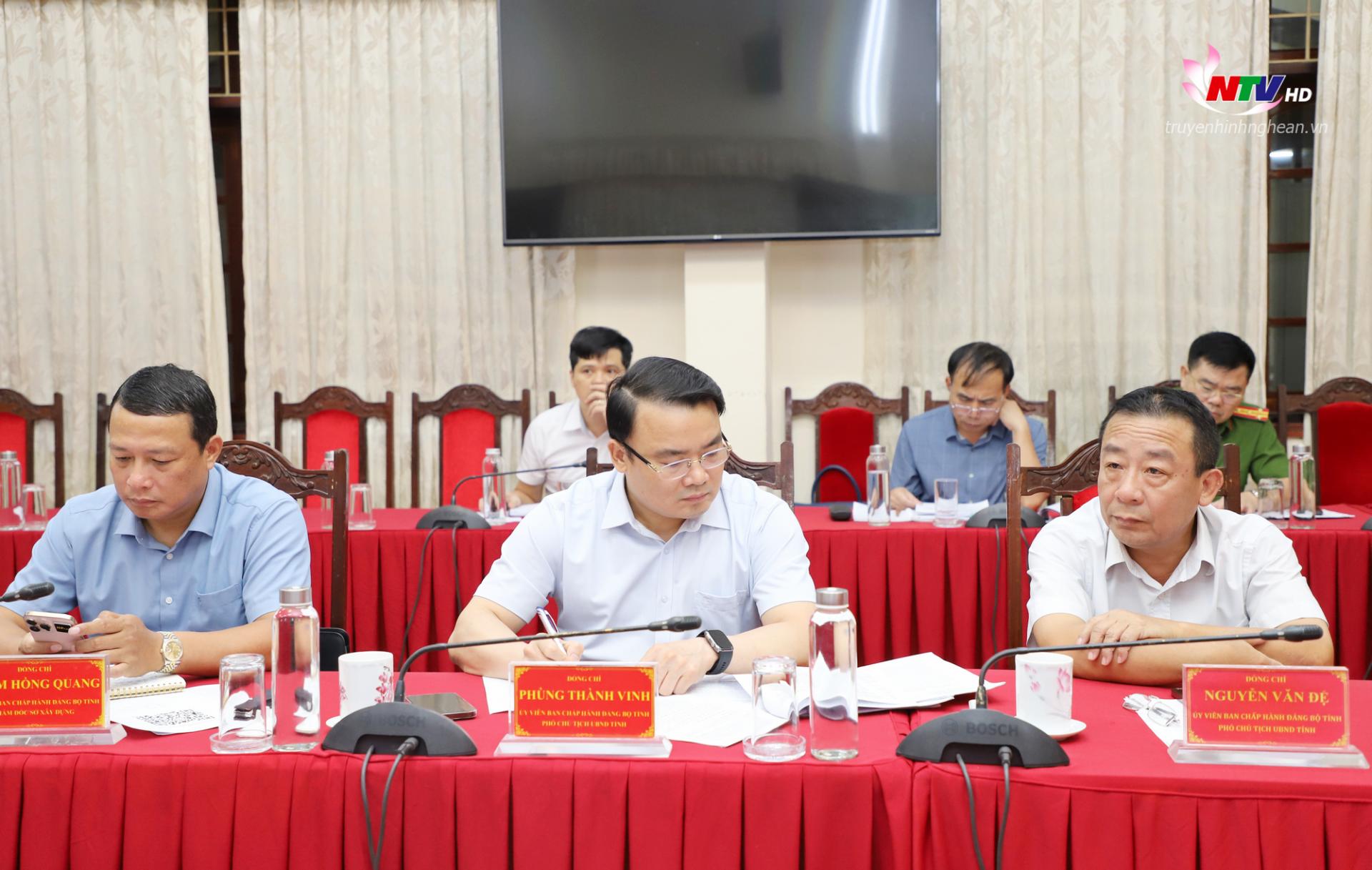 | Các đồng chí Phó Chủ tịch UBND tỉnh và lãnh đạo Sở, ban ngành dự cuộc họp. |