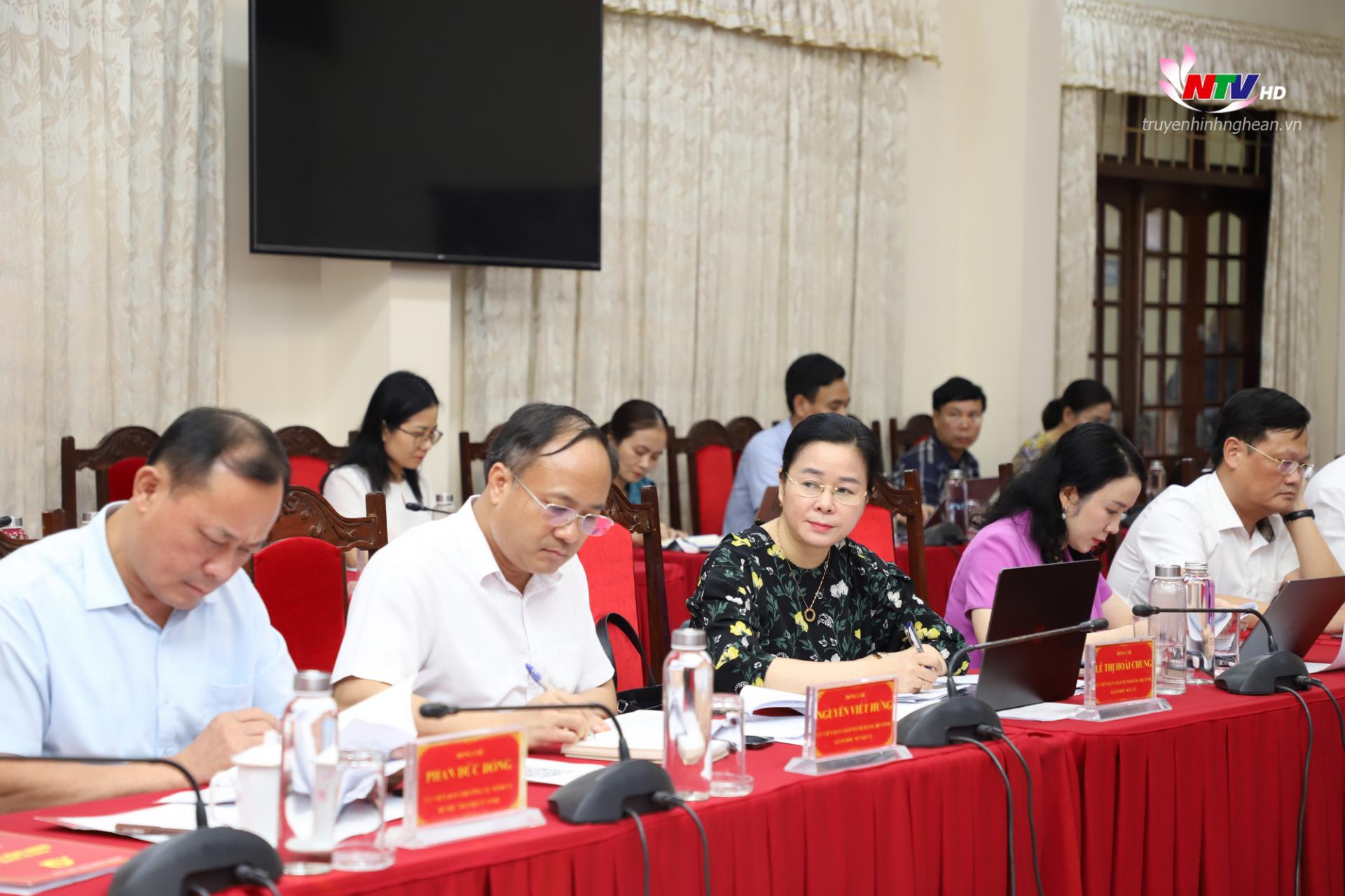 | Đồng chí Võ Thị Minh Sinh - Phó Bí thư Tỉnh ủy, Chủ tịch Ủy ban MTTQ, Trưởng đoàn ĐBQH tỉnh cùng các đồng chí Uỷ viên BTV Tỉnh uỷ dự cuộc họp. |