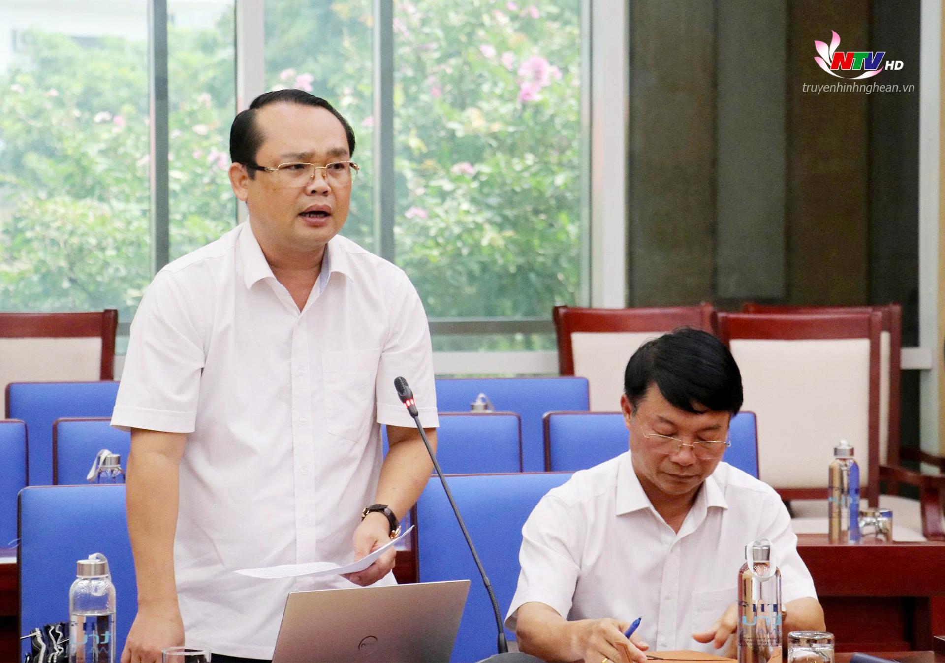 | Phó Chủ tịch UBND thị xã Hoàng Mai Phạm Văn Hào phát biểu tại cuộc họp. |