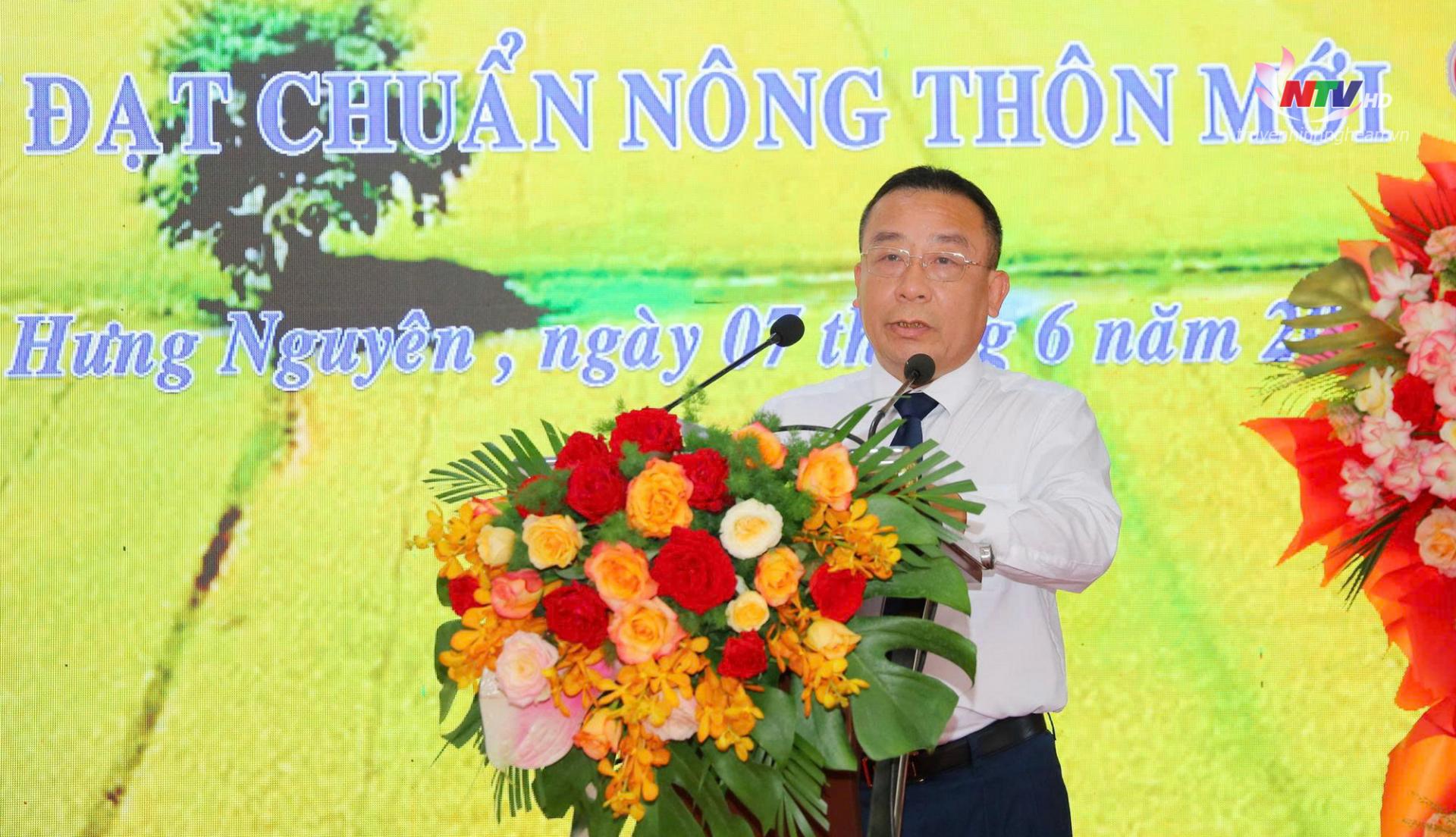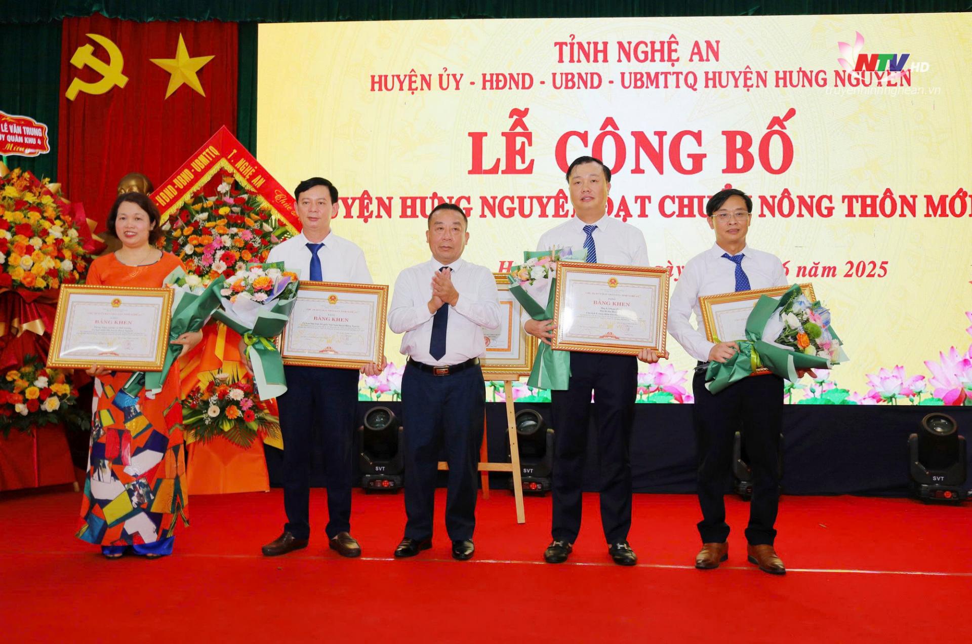 Phát biểu tại buổi lễ, Phó Chủ tịch UBND tỉnh Nguyễn Văn Đệ đã biểu dương và chúc mừng những thành tích, kết quả mà Đảng bộ, Chính quyền và Nhân dân huyện Hưng Nguyên đã nỗ lực phấn đấu trong hơn 10 năm qua trong phòng trào xây dựng NTM. Phó Chủ tịch UBND đề nghị Đảng bộ, chính quyền và nhân dân của các xã được thành lập mới sau sắp xếp đơn vị hành chính tiếp tục quán triệt và triển khai có hiệu quả các mục tiêu, nhiệm vụ, giải pháp được đặt ra trong Nghị quyết đại hội Đảng bộ các xã nhiệm kỳ 2025 – 2030. Giữ vững và nâng cao chất lượng các tiêu chí NTM, nhất là các tiêu chí về môi trường, thu nhập, văn hóa và an ninh trật để hướng tới mục tiêu xây dựng các xã mới trở thành đơn vị NTM nâng cao, NTM kiểu mẫu.