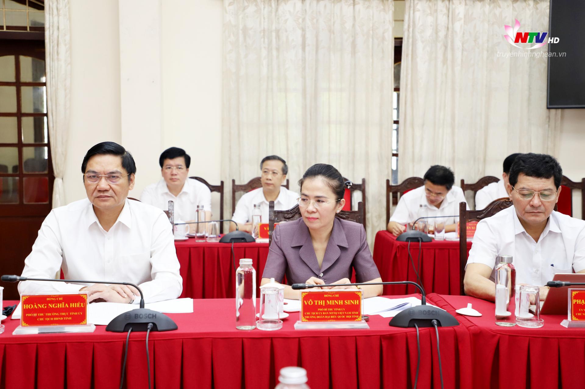 Dự họp có các đồng chí: Hoàng Nghĩa Hiếu - Phó Bí thư Thường trực Tỉnh uỷ, Chủ tịch HĐND tỉnh; Võ Thị Minh Sinh - Phó Bí thư Tỉnh uỷ, Chủ tịch UBMTTQ tỉnh, Trưởng đoàn ĐBQH tỉnh; Các đồng chí Uỷ viên BTV Tỉnh uỷ: Nguyễn Nam Đình - Phó Chủ tịch Thường trực HĐND tỉnh; Phạm Trọng Hoàng - Chủ nhiệm UBKT Tỉnh uỷ; Thiếu tướng Bùi Quang Thanh - Giám đốc Công an tỉnh; Phan Đức Đồng - Bí thư Thành ủy, Chủ tịch HĐND thành phố Vinh; Lãnh đạo các Sở, ban ngành, các địa phương.