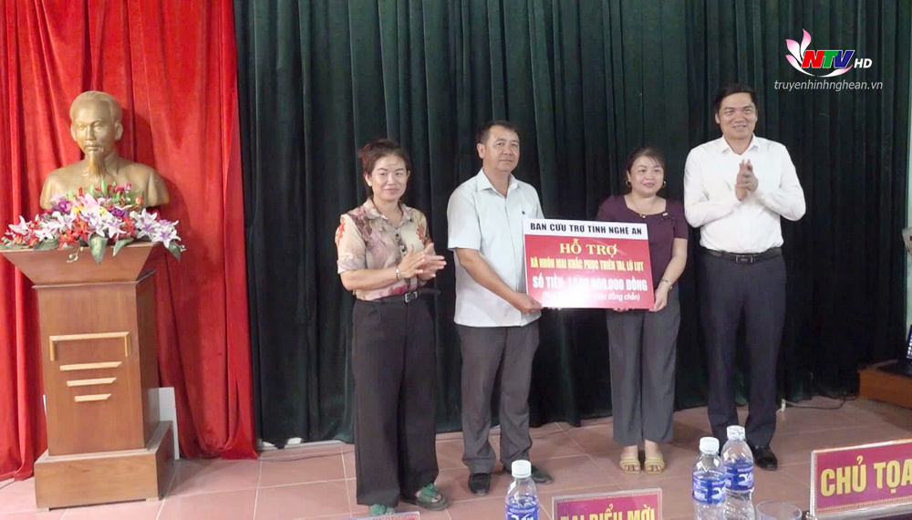 | Đồng chí Hoàng Nghĩa Hiếu và Ban cứu trợ tỉnh hỗ trợ 1 tỷ đồng cho xã Hữu Khuông khắc phục thiệt hại do mưa lũ vừa qua. |